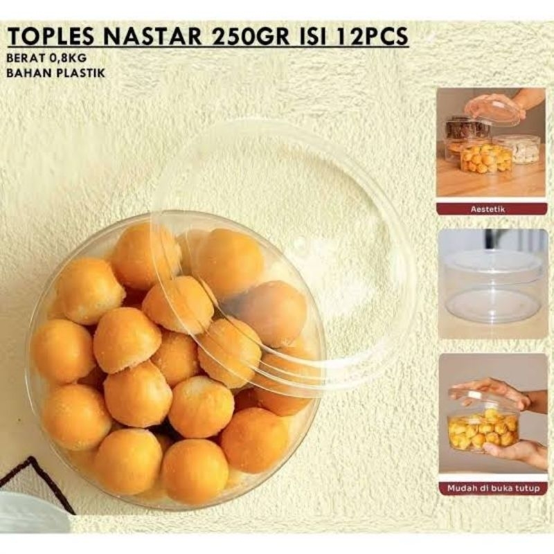 Toples kue kering 500gr bulat datar / Toples Plastik nastar 500gr