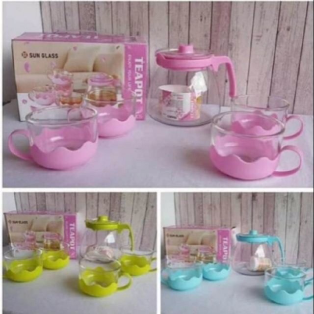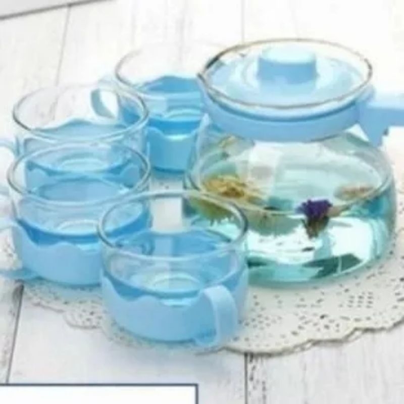 [TEAPOT 5IN1] Tempat Minum Teh Teko Set Cangkir Gelas Kaca Teapot Kado