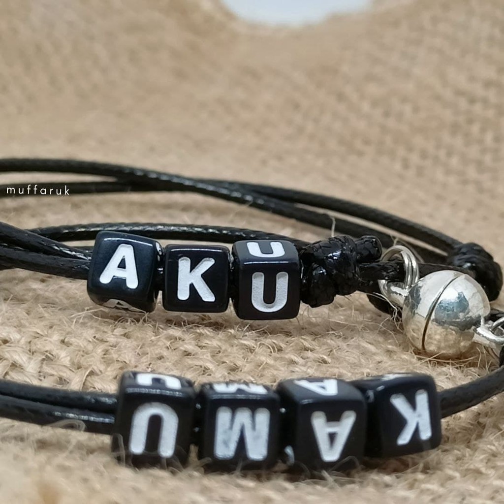 FOTO REALPICT GELANG NAMA MAGNET / GELANG COUPLE CUSTOM HURUF MAGNETIC / GELANG REQUEST KEKINIAN