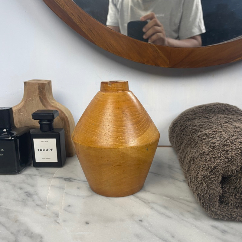 KIAI Hera - wooden vase [vas kayu jati, vas hiasan meja] grade A