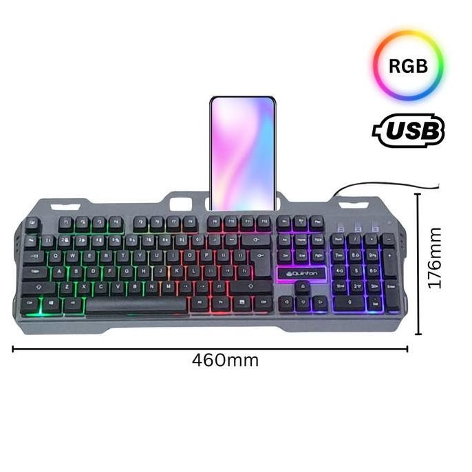 Quinton Keyboard gaming Kabel usb VR30 Cool Metal wired keyboard feel Mechanical Gaming usb 2.0 lampu Led RGB Computer pc Besi Komputer Laptop Logam Plastik tanpa Mouse keyboard eksternal keyboard usb keyboard HT