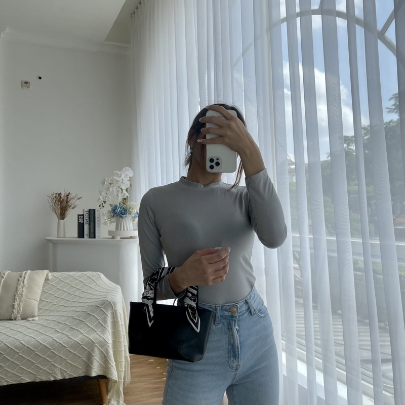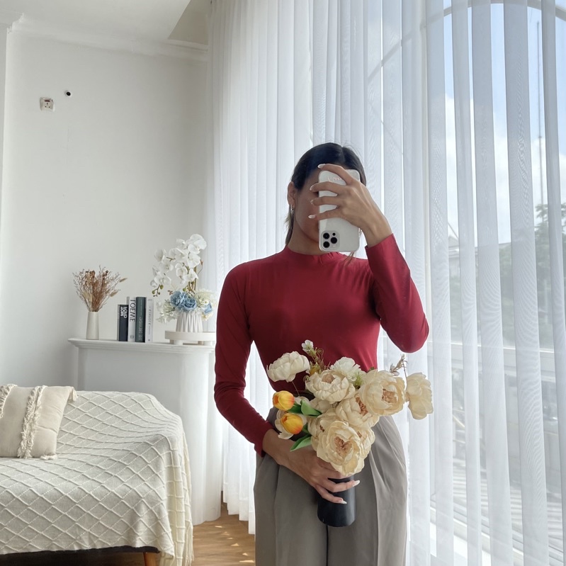 AlikaMode - Cara Long Sleeve Top Rayon Polos Wanita | Inner Manset Atasan Daleman Lengan Panjang Baju Cewek Casual