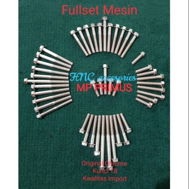 Full Set Mesin MP PRIMUS Baut Original Chrome Kunci T8