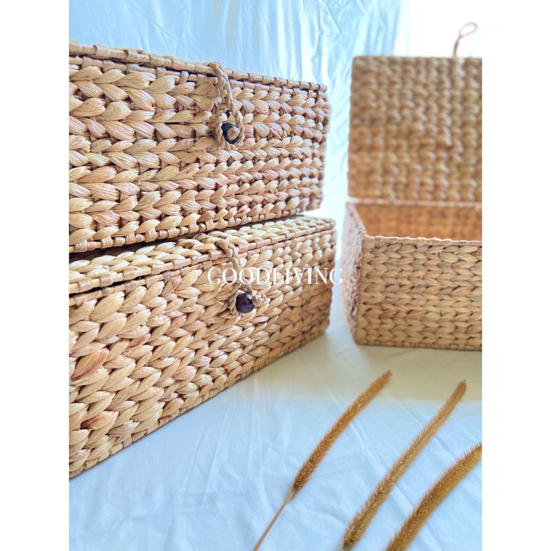 Box penyimpanan serbaguna enceng rangka besi dengan tutup | Joy Box