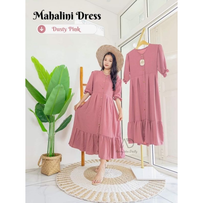 Mahalini Dress Bahan CringkelAirflow Warna Dusty Pink