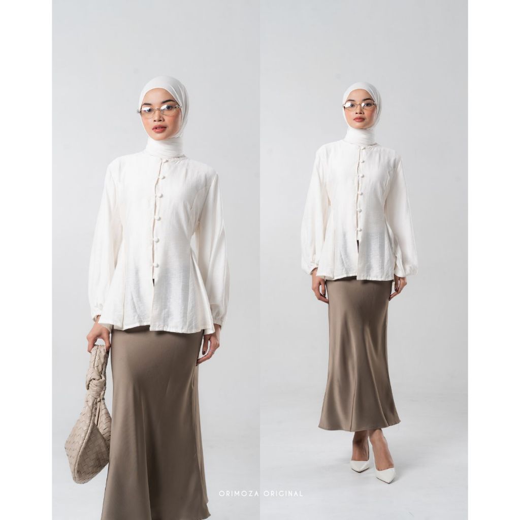 Orimoza Calista Blouse A-line Puff Sleeve Wanita Polo Linen