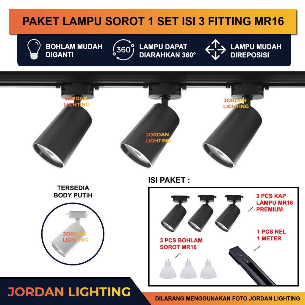 Lampu Sorot Rel Set isi 3 Tracklight Spotlight LED Bisa Diganti