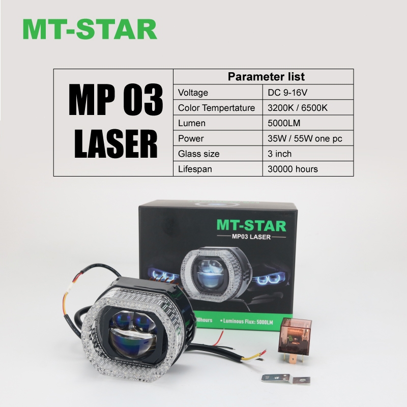 MT-STAR - MP03 LASER PROJIE BILED MATRIX LASER 3 INCH BLUE LENS BODY BLACK TURBO FAN COOLING