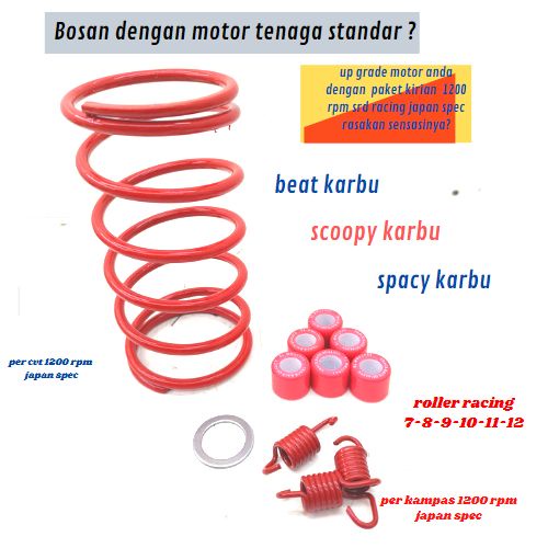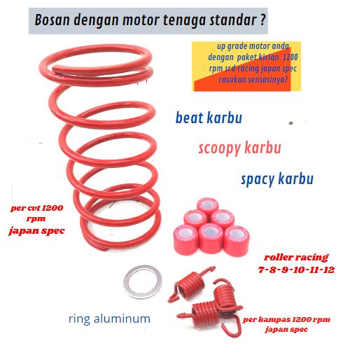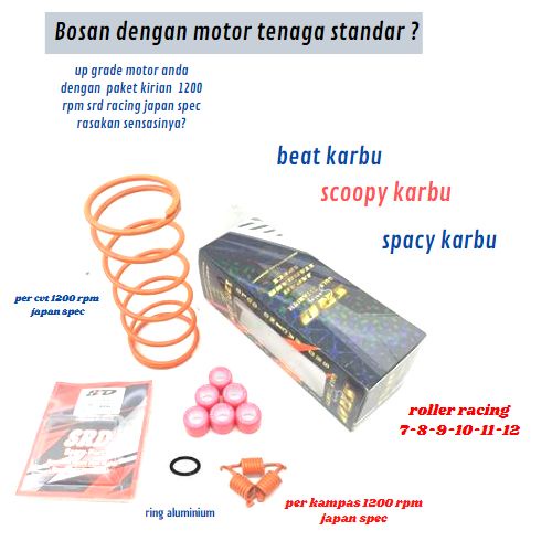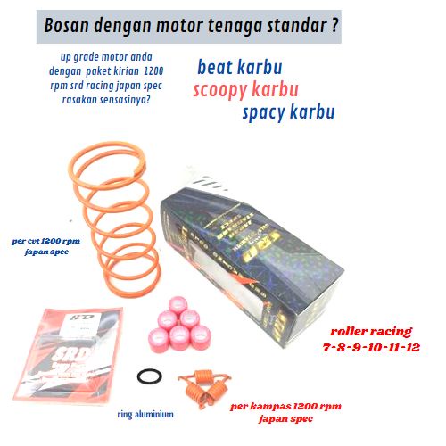 BEAT KARBU-PAKET KIRIAN AKSLRERASI MENINGKAT BEAT KARBU SCOOPY KARBU 1200 RPM SRD RACING 4 MACAM, PER CVT 1200 RPM-PRT KAMPAS 1200 RPM-ROLLER DAN RING PULLY JAPAN SPEC
