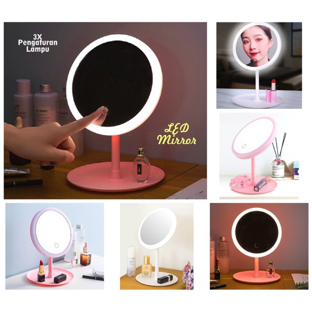 3 WARNA LAMPU RECHARGEABLE, LED Mirror 3 KALI PENGATURAN LAMPU, Cermin LED TERANG LAMPU BISA DIATUR