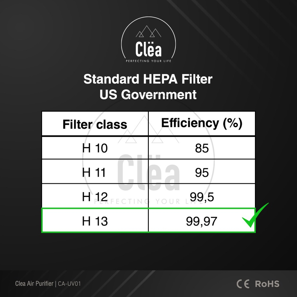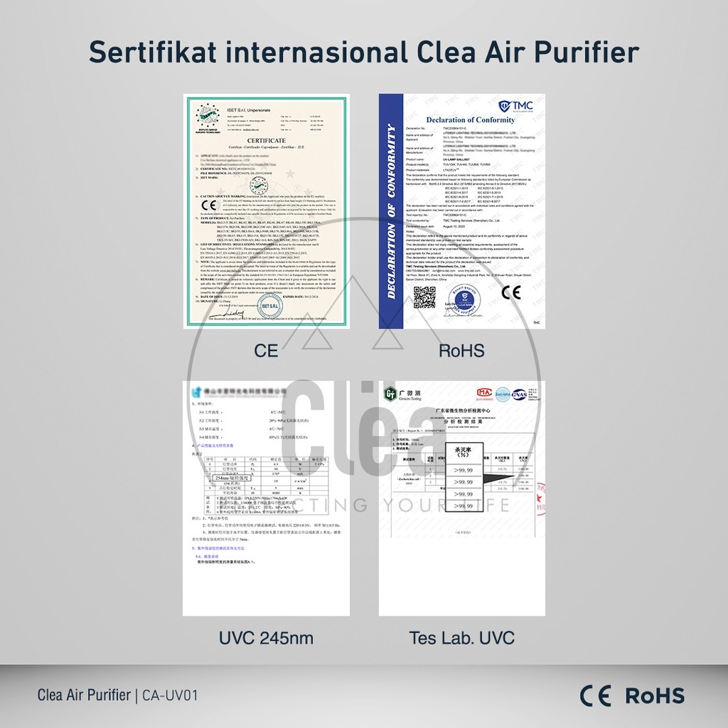 CLEA Air Purifier HEPA 13 Filter + UVC + Ion negatif / Anion Membersihkan Udara Rumah Membasmi Kuman Virus Bakteri 99,99%