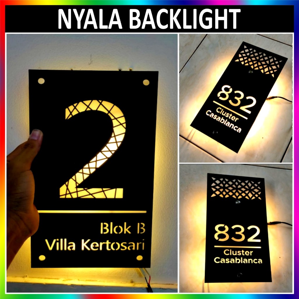 Nomor Rumah Acrylic Modern Eksklusif Timbul Negatif Nyala LED