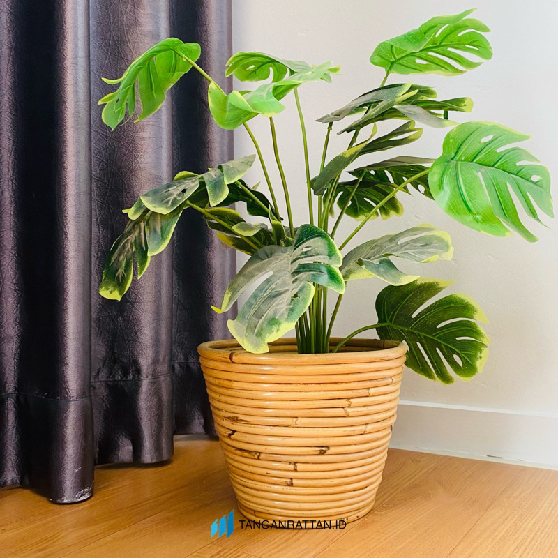 STANDING POT ROTAN + COVER POT ROTAN FINISHING MELAMIN MENGKILAP