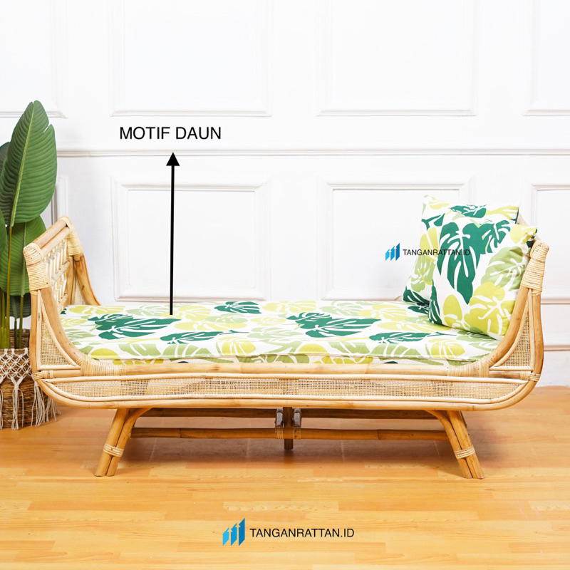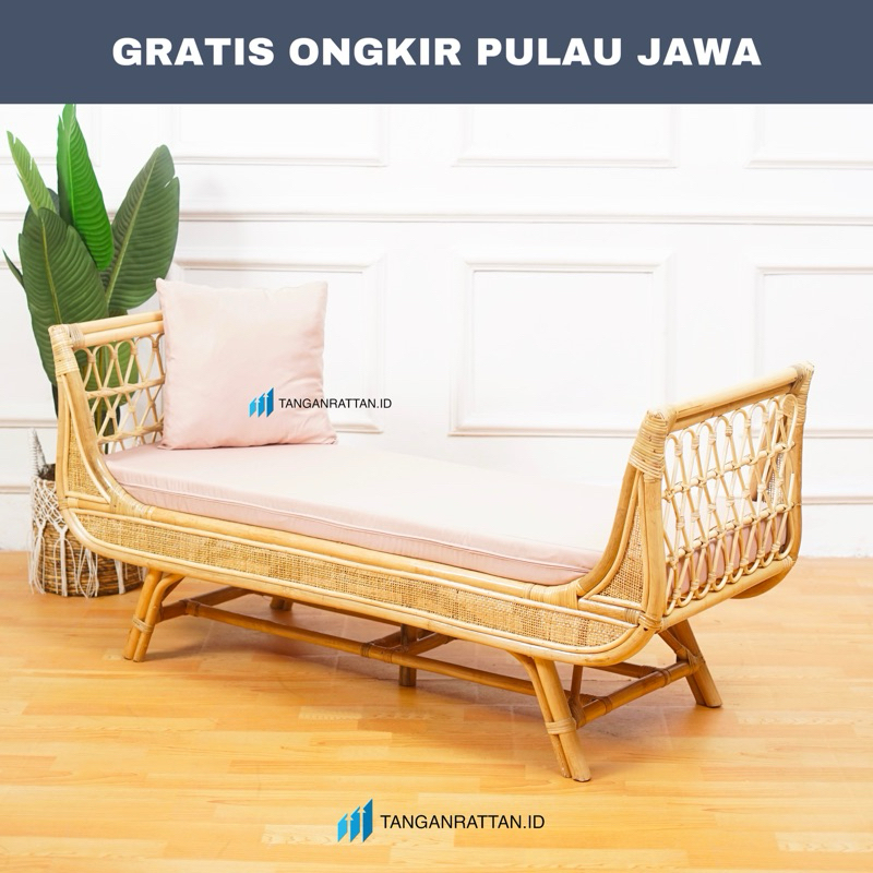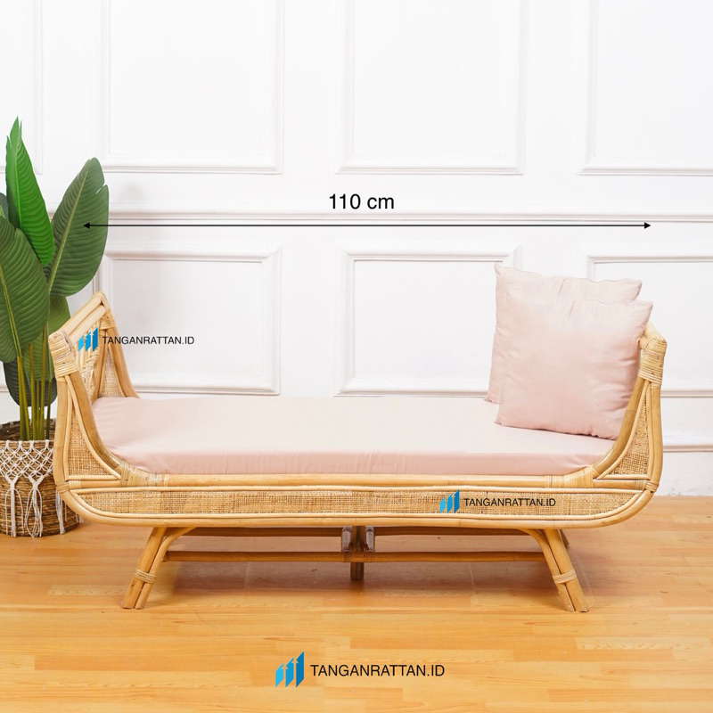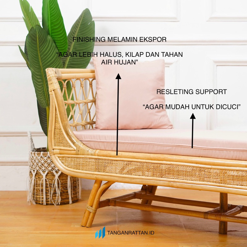 KURSI SOFA BANCH ROTAN PANJANG 3 SEATER DENGAN BANTAL / SOFA SANTAI BENCH ROTAN FINISHING MELAMIN EKSPOR