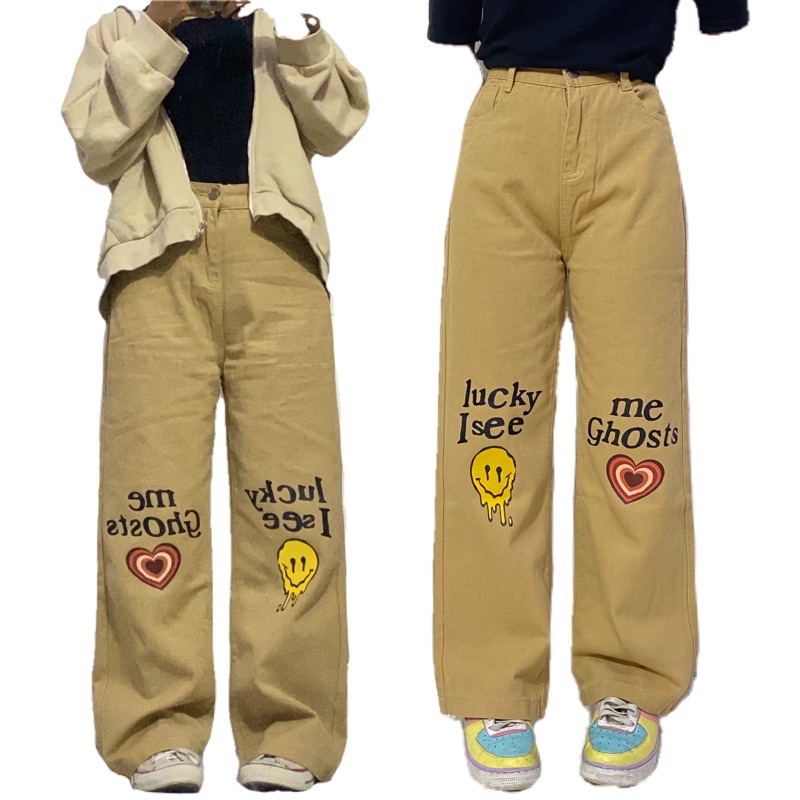 LUCKYME BROWN JEANS / PRINTED JEAN /JEANS MOTIF