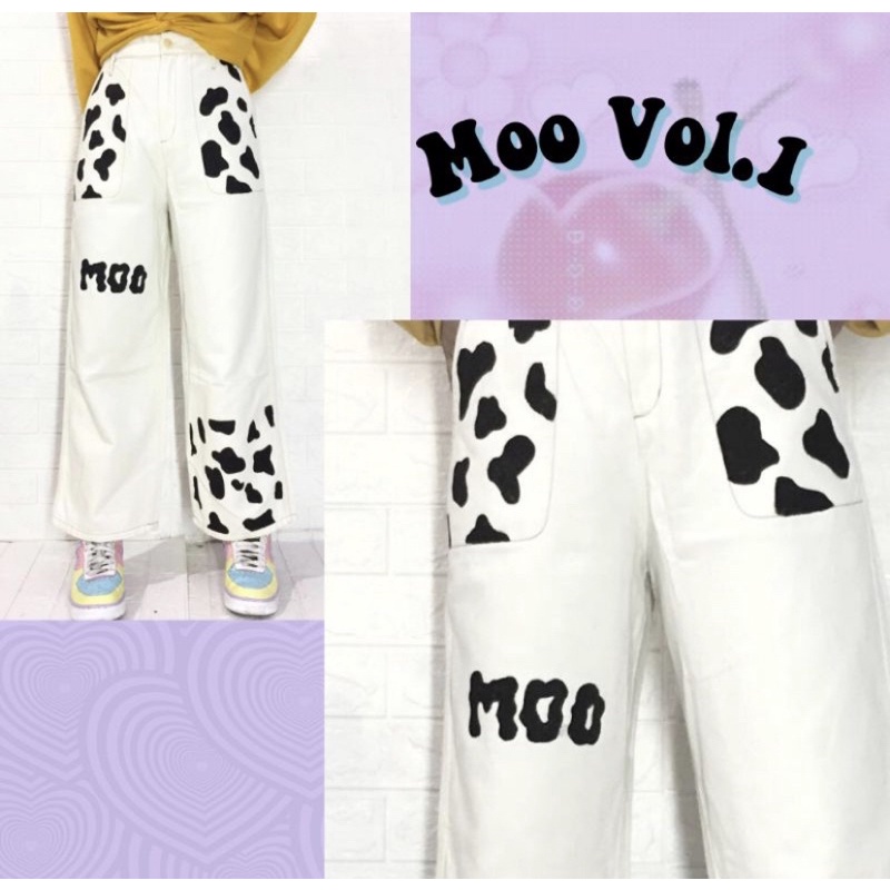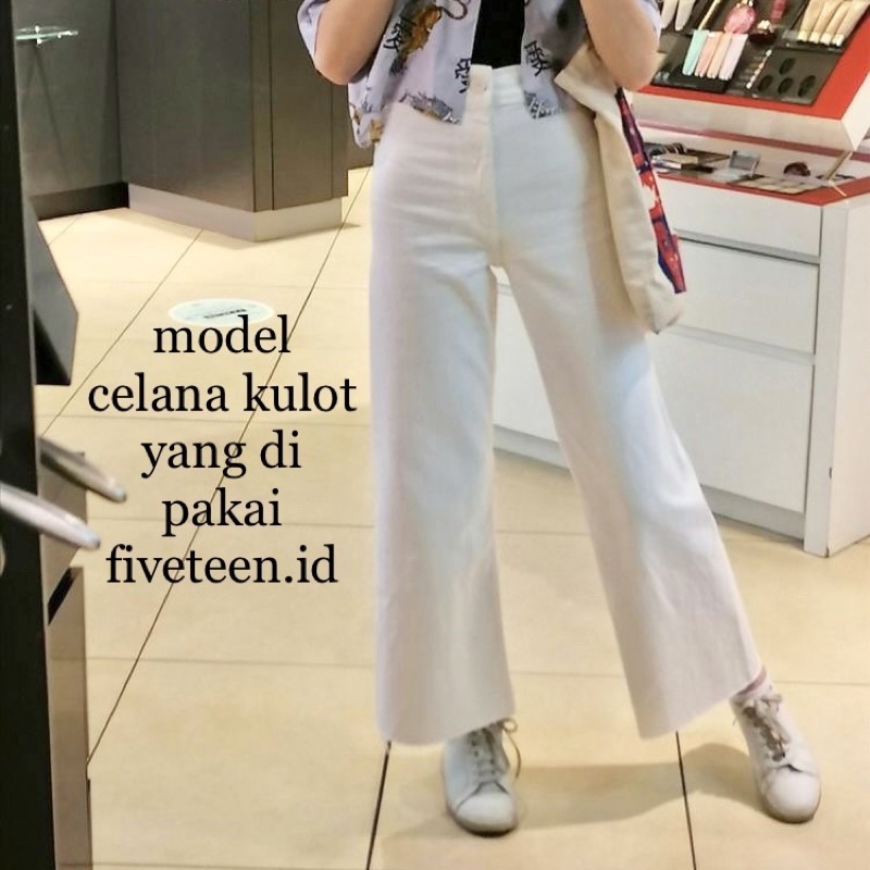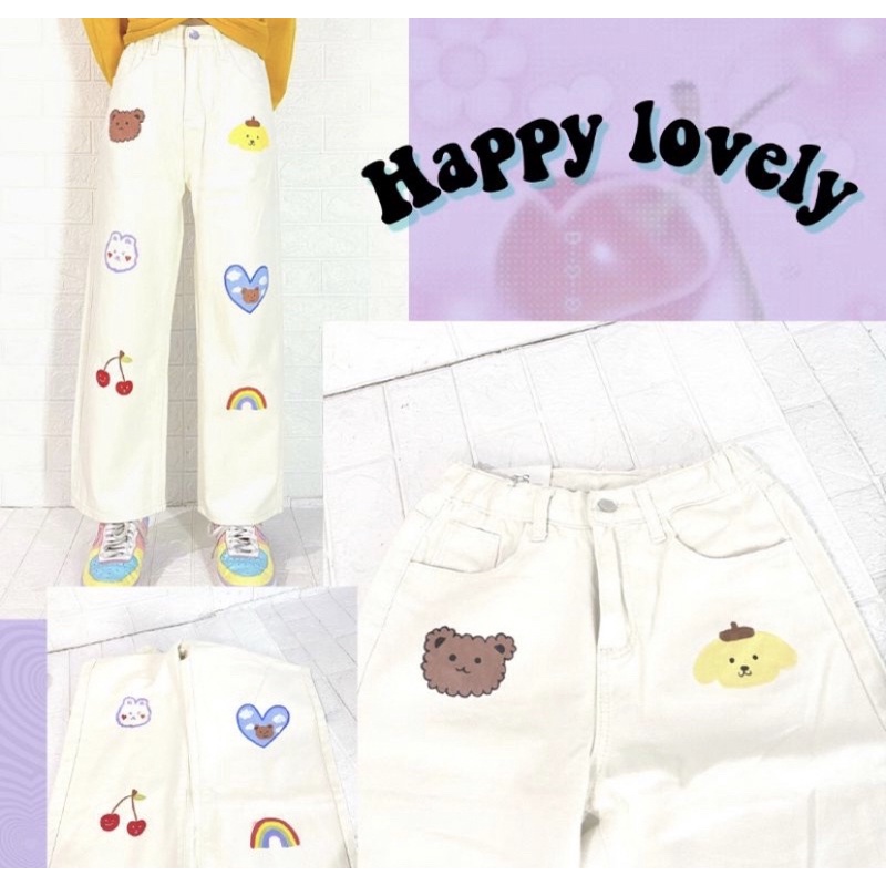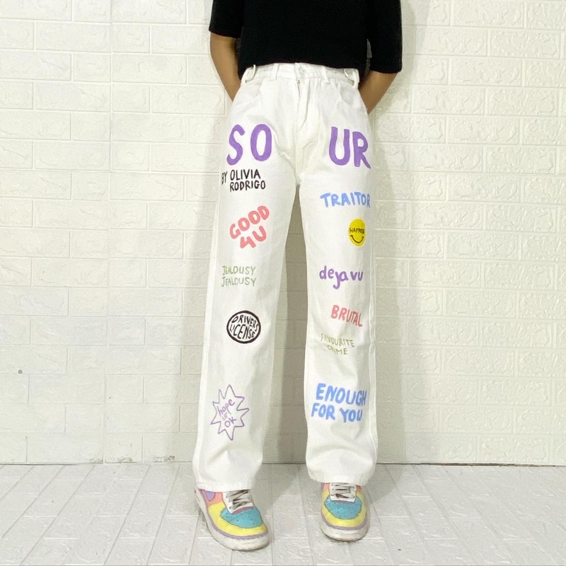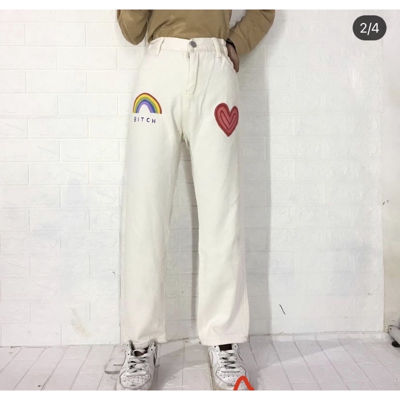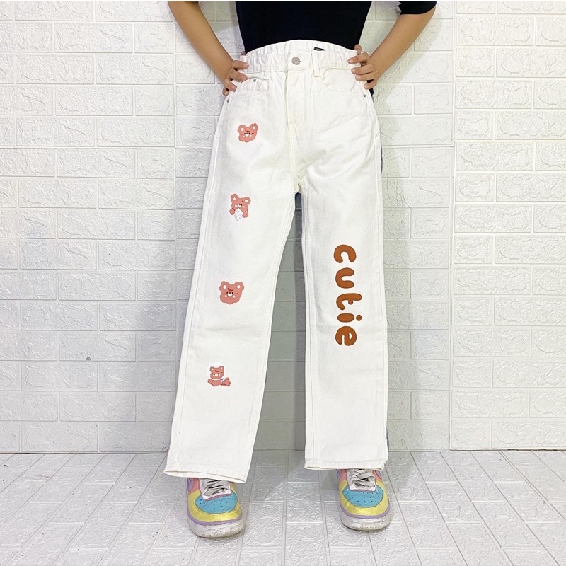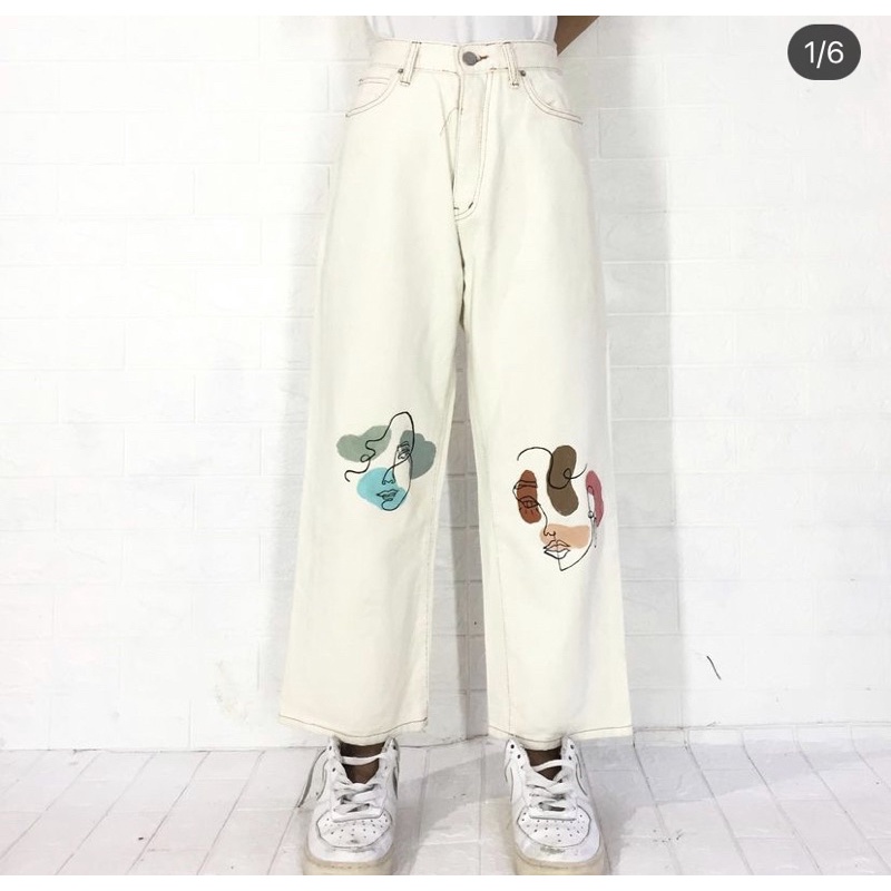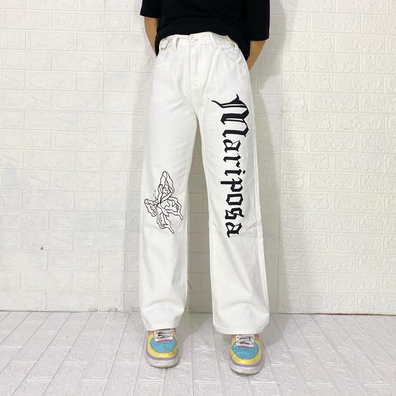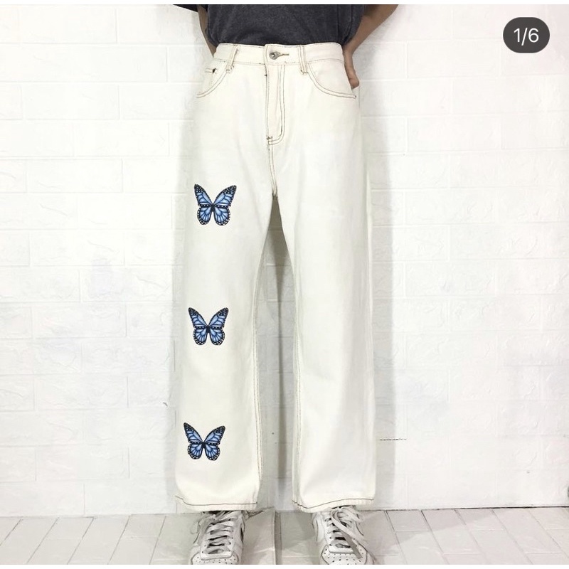 WHITE JEANS KULOT MOTIF MARIPOSA ,SOUR /PAINTED JEANS FIRE