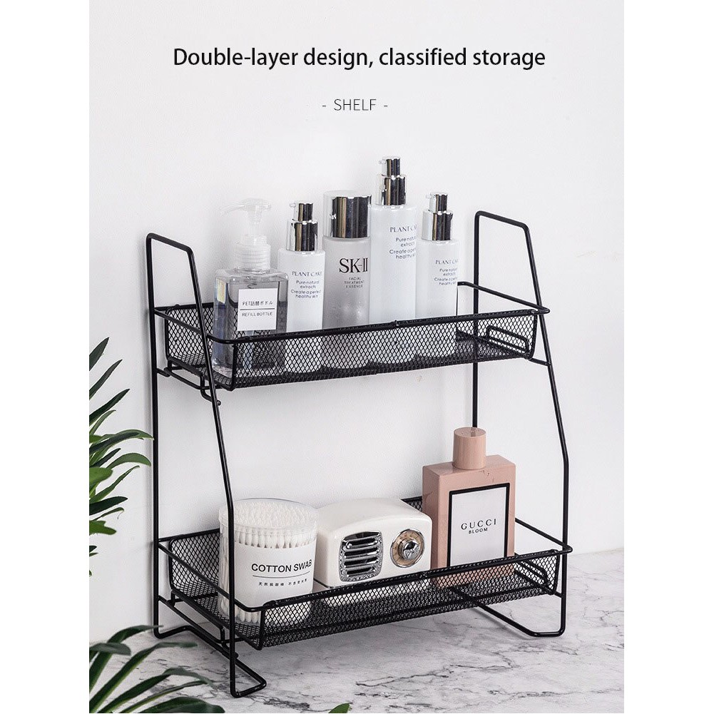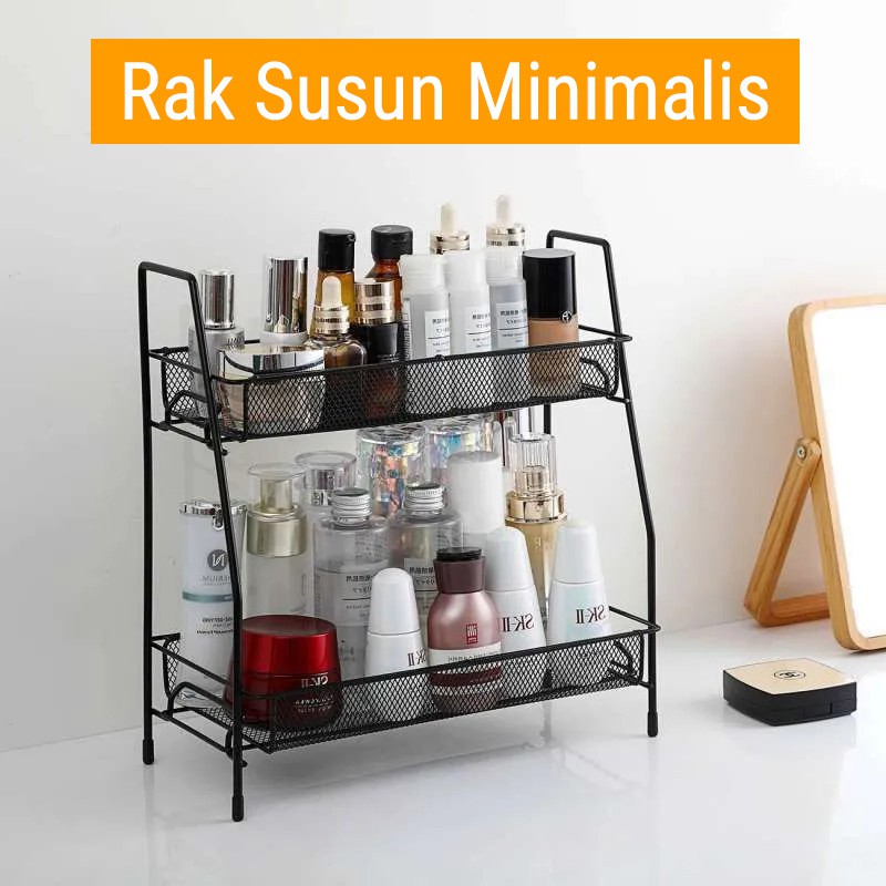 Rak Susun Minimalis Stainless Steel Kosmetik Organizer Multifungsi/Rak Bumbu Dapur Serbaguna