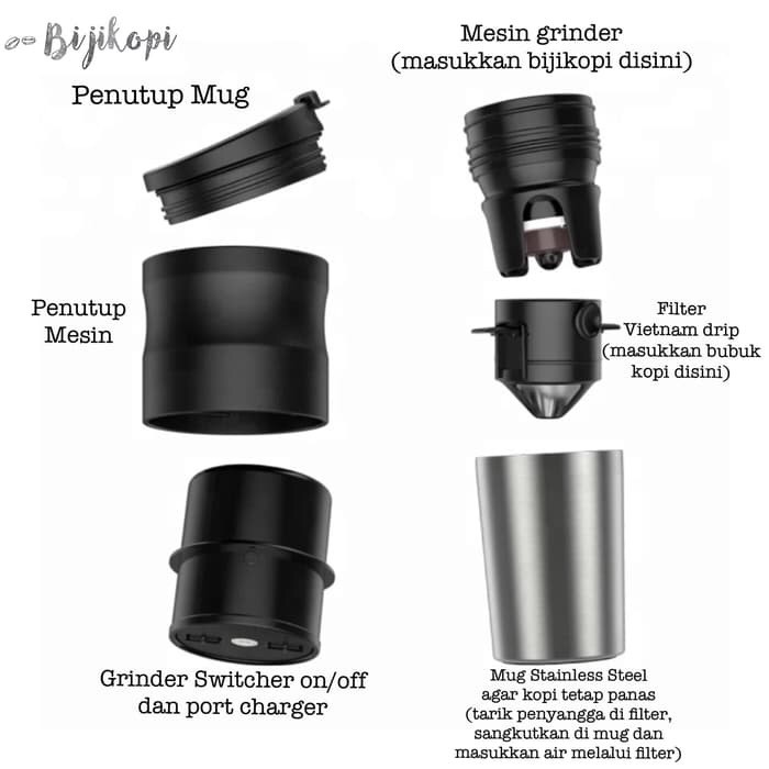 Coffee Maker Portable Grinder Kopi Elektrik + Filter + Tumbler pb