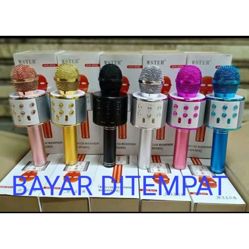 MIC WSTER WS 858 Wireless Bluetooth Karaoke + Speaker Microphone Portable Smule WS858 Karoke
