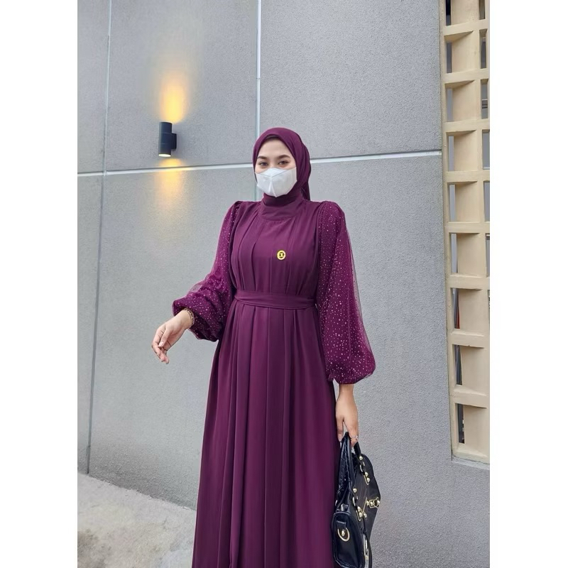 Audi Dress Set Hijab Ceruty Mix Tille Sparkling Premium Gamis Muslim