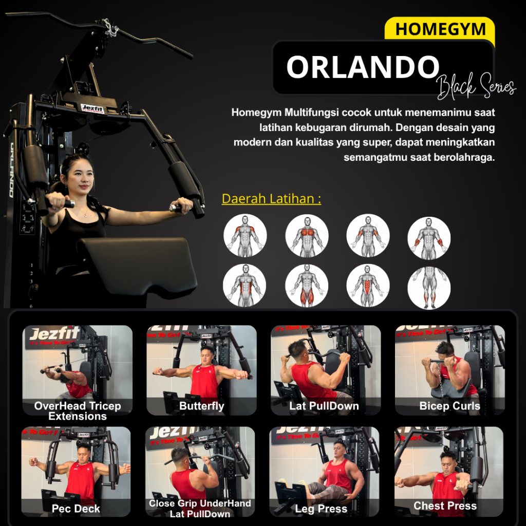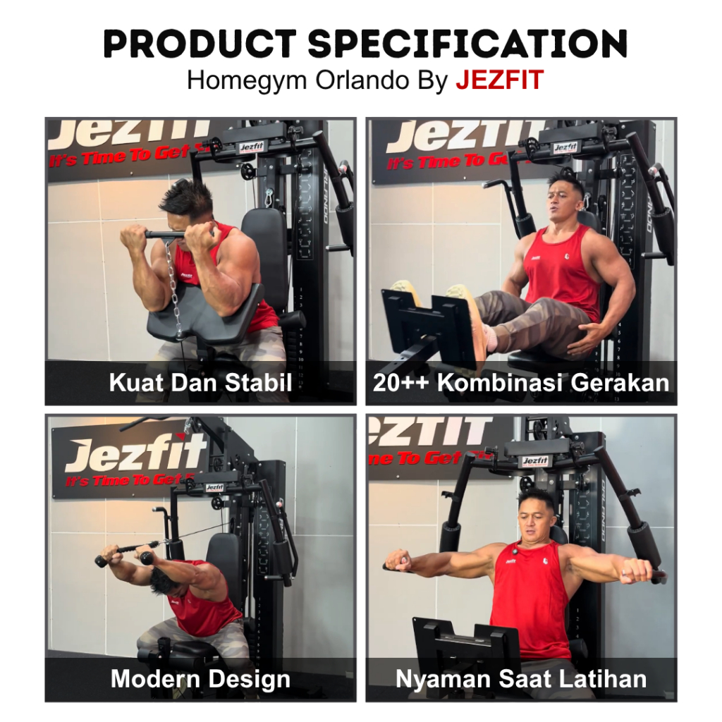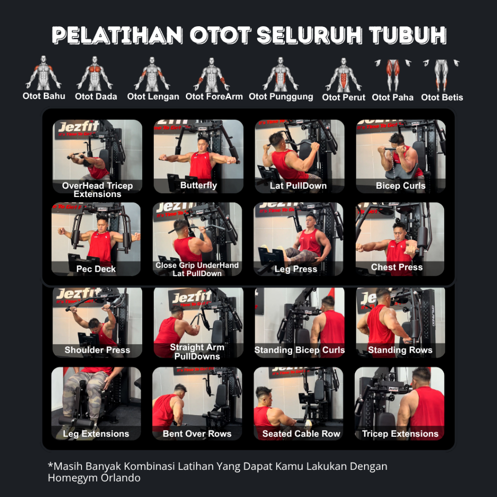 Jezfit - Alat Fitness Homegym Orlando 165LBS (75KG) Homegym 1 Sisi Weight With 14 Stack Plate Include 38 Varian Gerakan Body Workout
