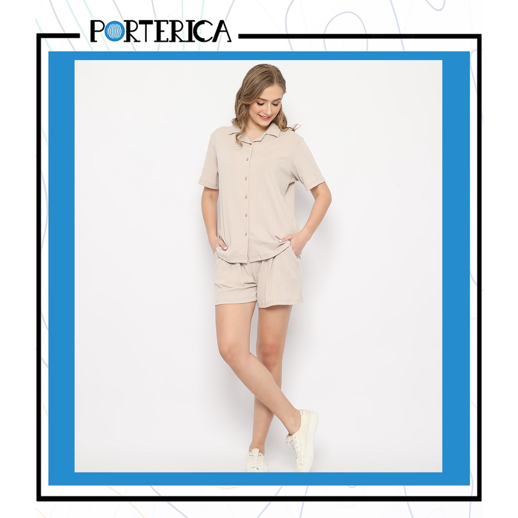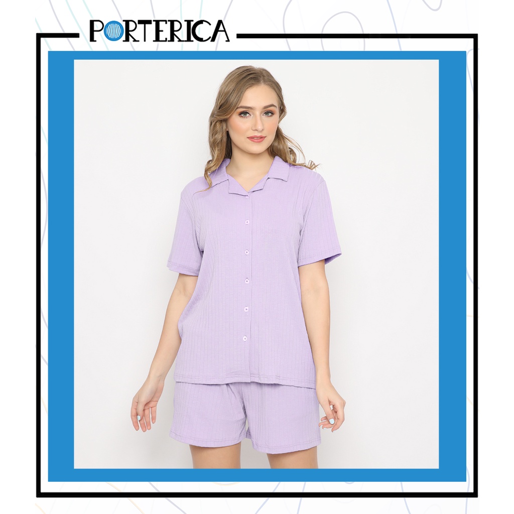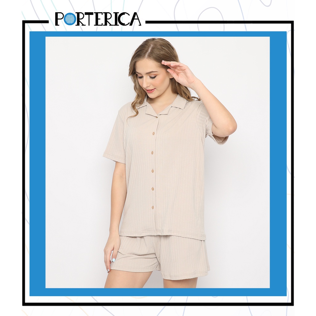 Porterica Casual Wear Salma Set Women Premium Viscose Cotton Spandex | Baju santai Sleepwear Piyama Wanita Bahan Sustainable Natural Katun | Shirt Pants