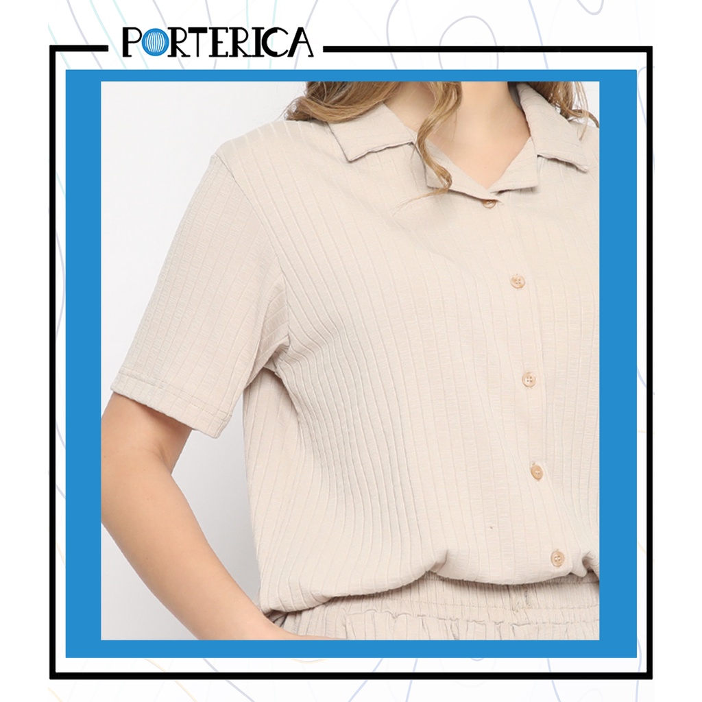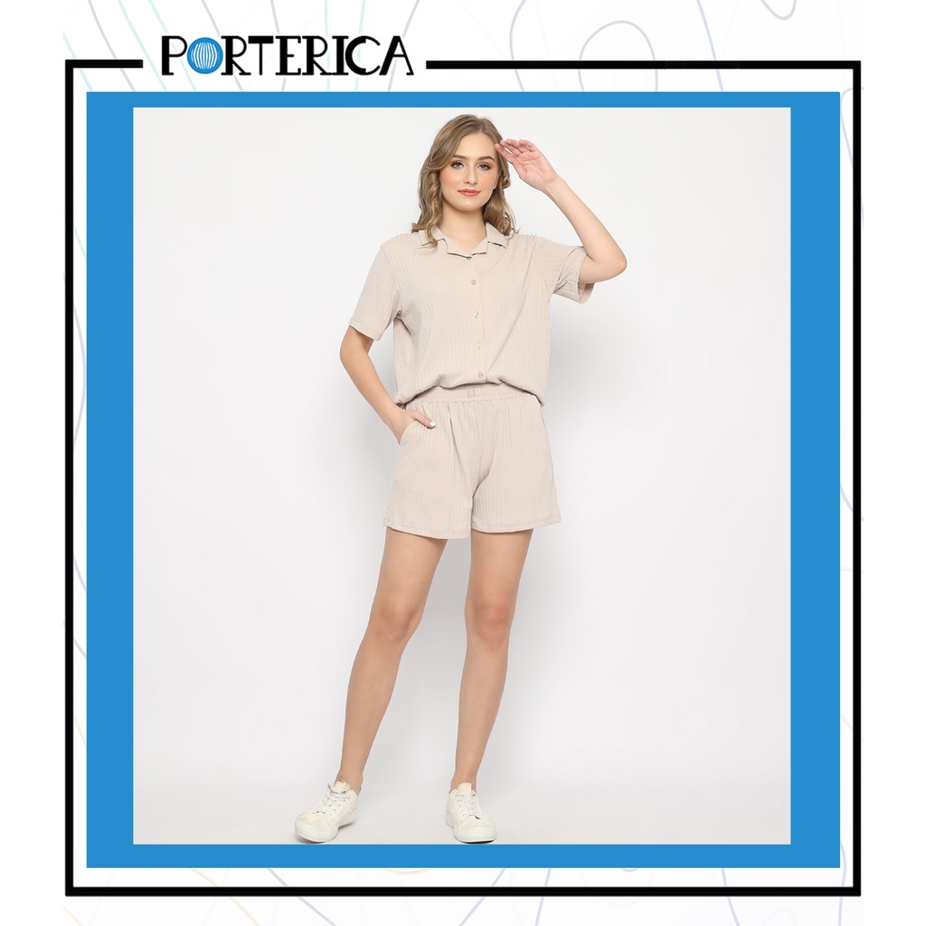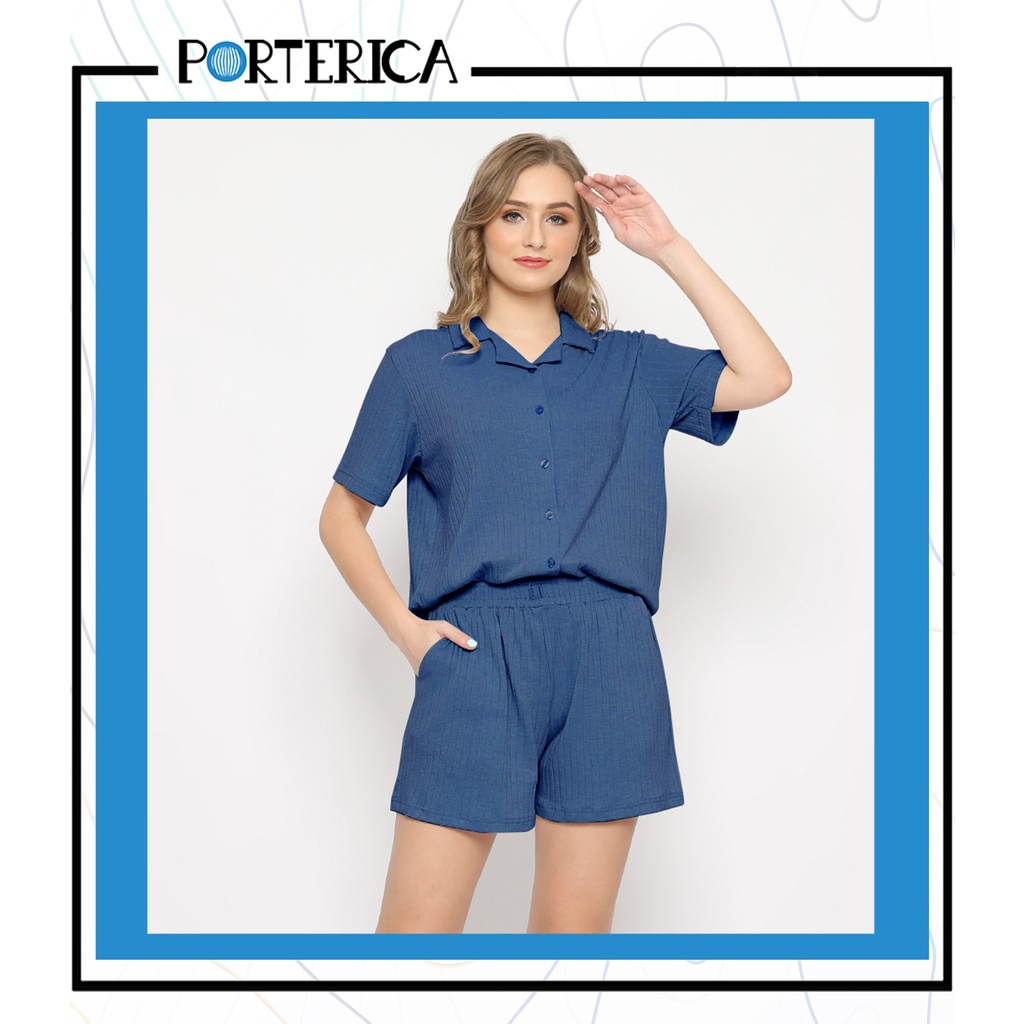 Porterica Casual Wear Salma Set Women Premium Viscose Cotton Spandex | Baju santai Sleepwear Piyama Wanita Bahan Sustainable Natural Katun | Shirt Pants