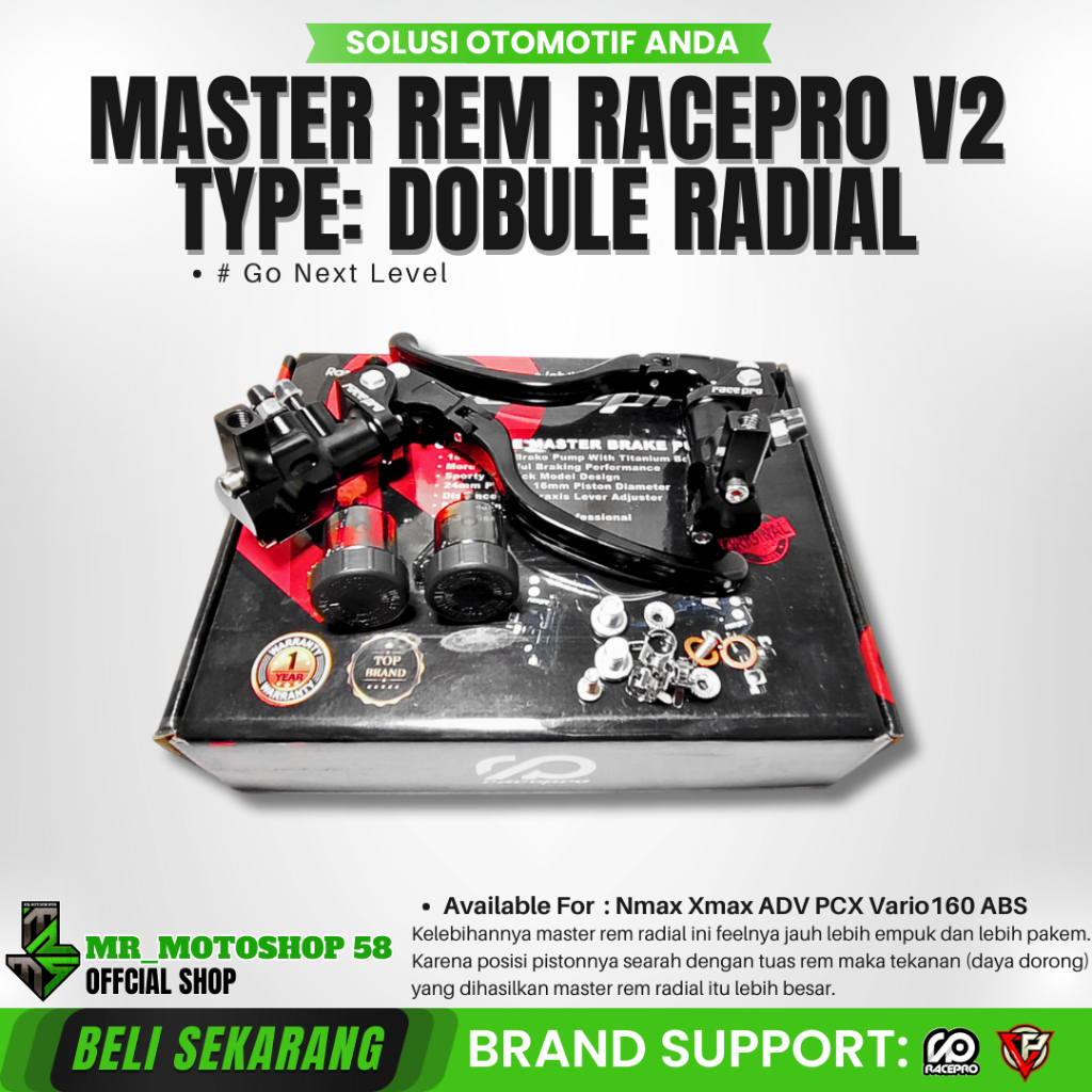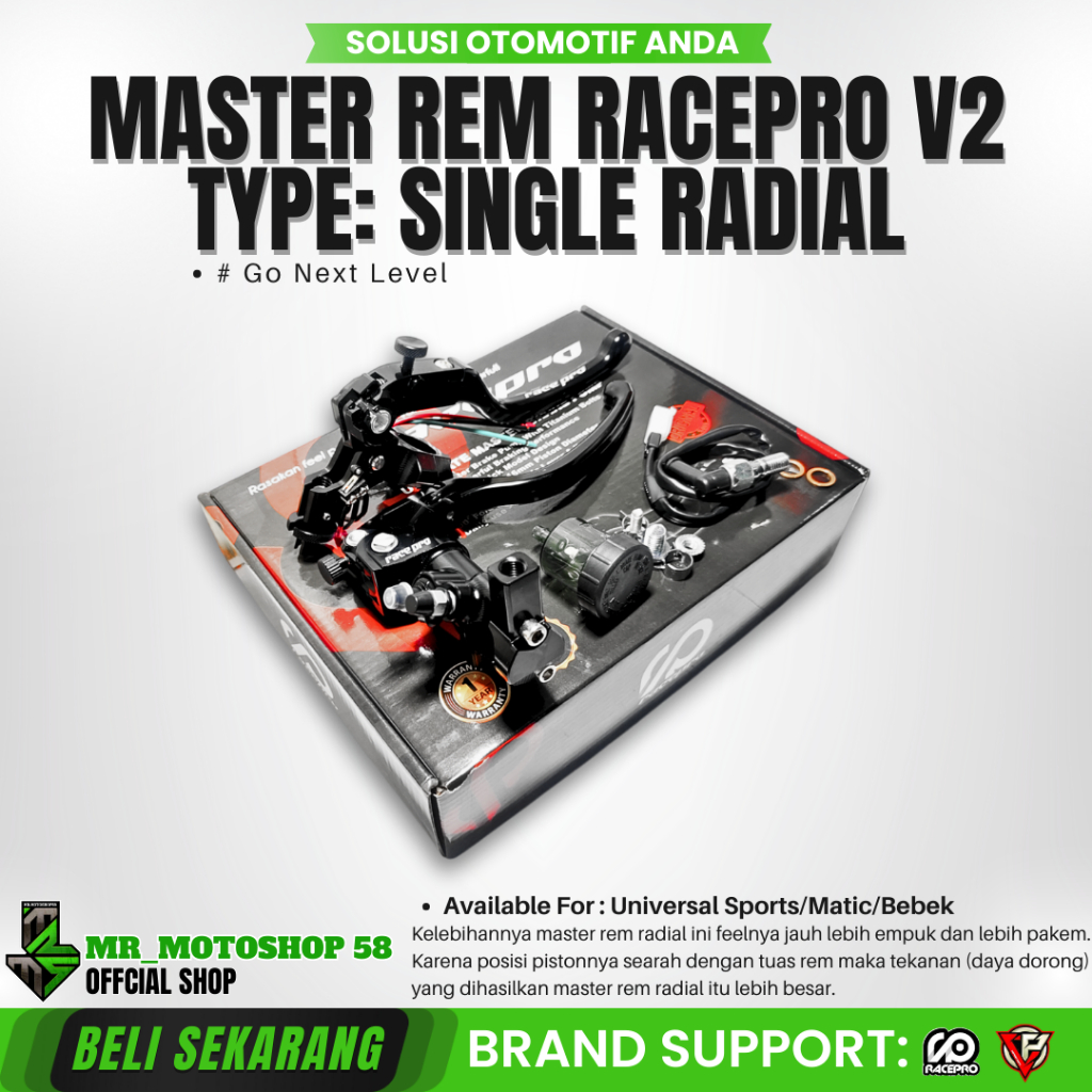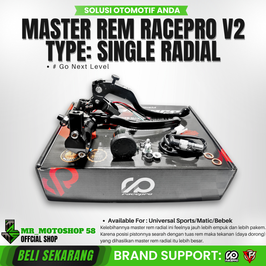 RACEPRO MASTER BRAKE PUMP MASTER REM RACEPRO V2 FULSET LENGKAP KOPLING KIRI MASTER REM SINGLE RADIAL