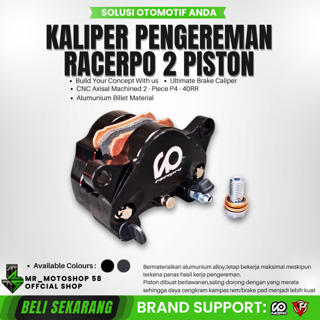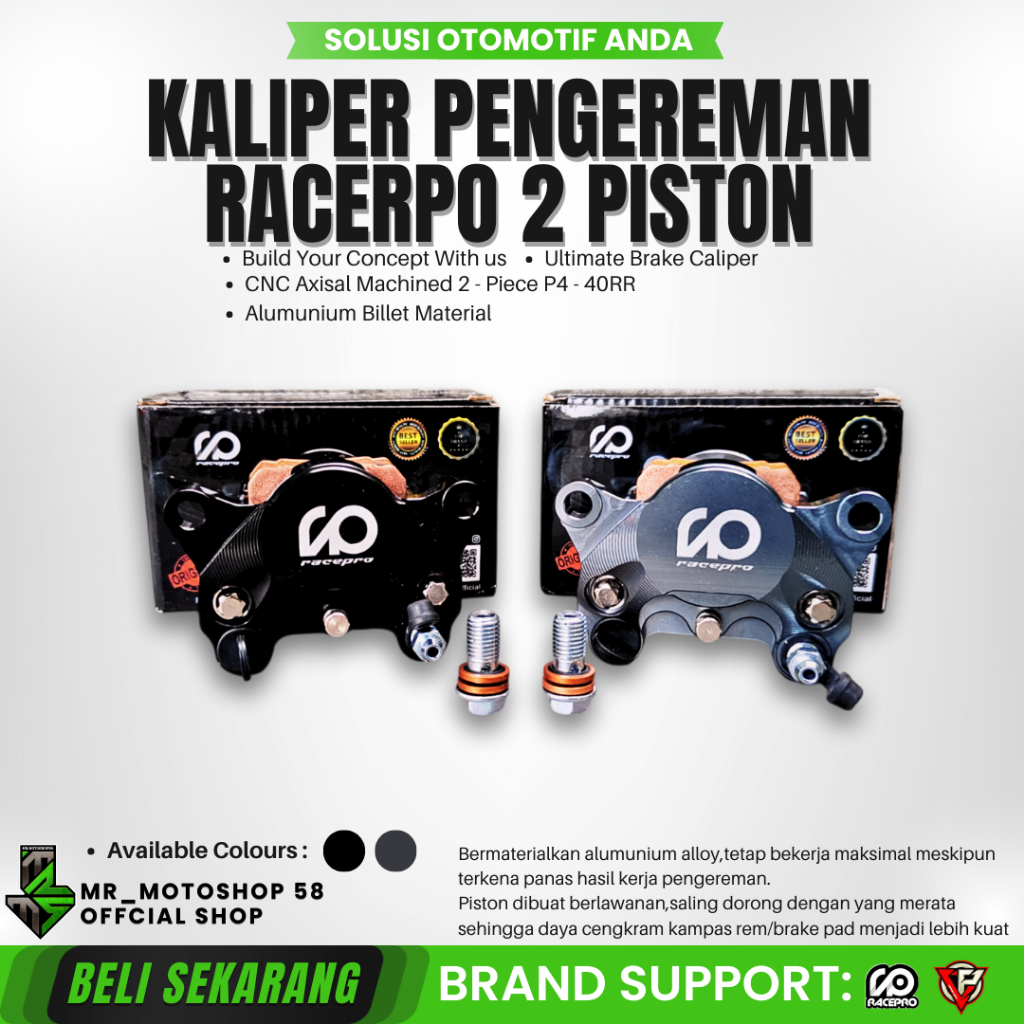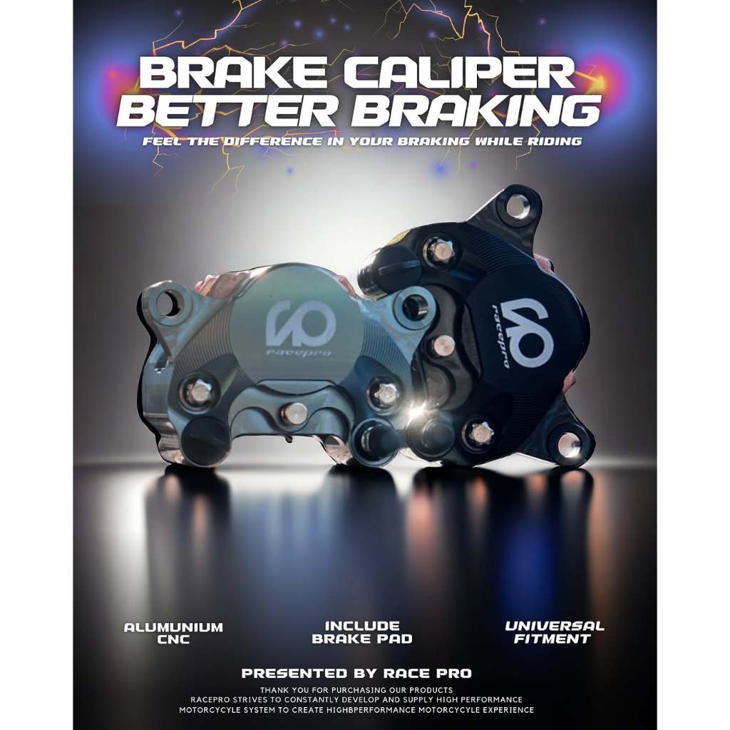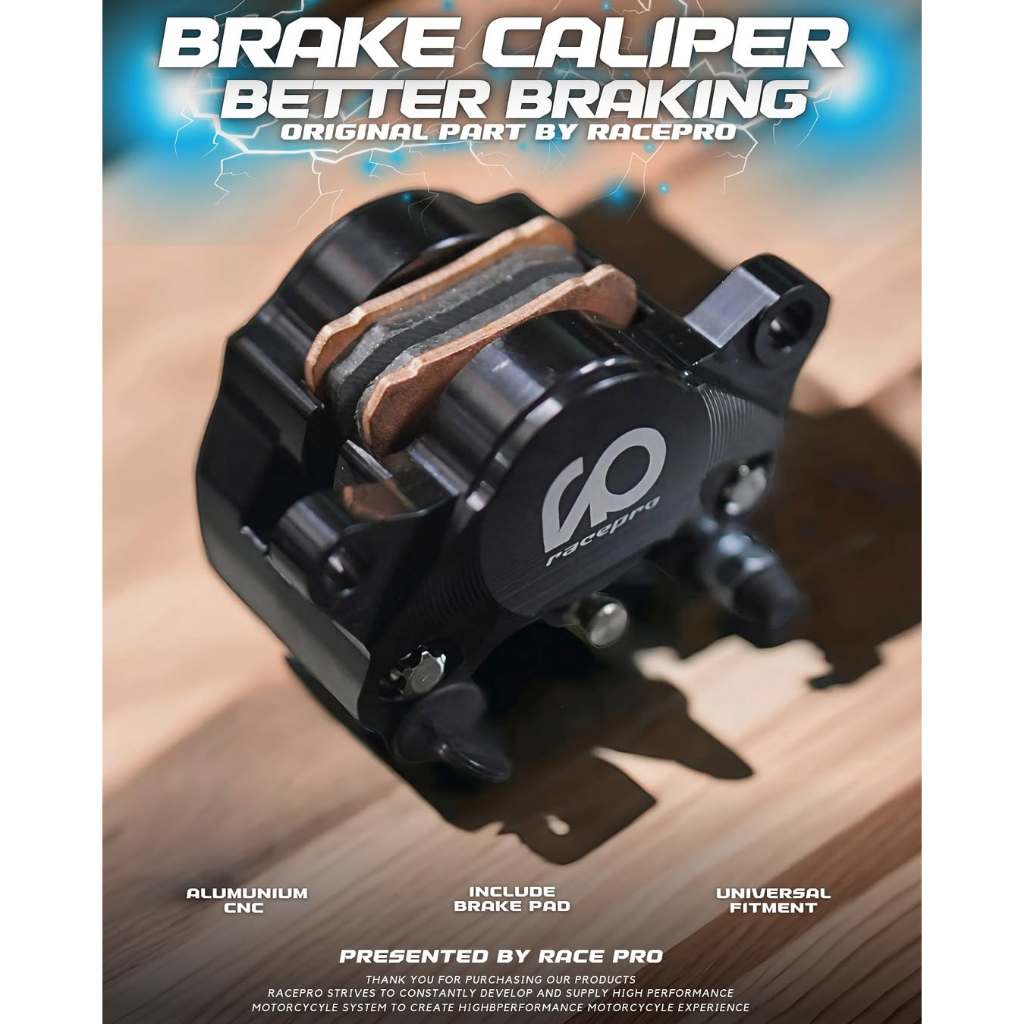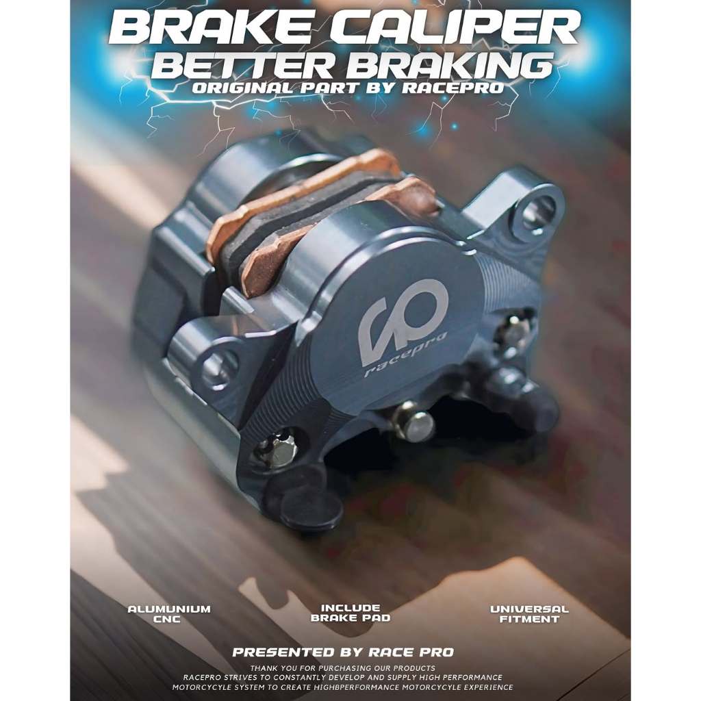 CALIPER RACEPRO 2 PISTON CALIPER KANAN DEPAN BELAKANG KALIPER 2 PISTON KALIPER 2P KANAN HITAM / GREY
