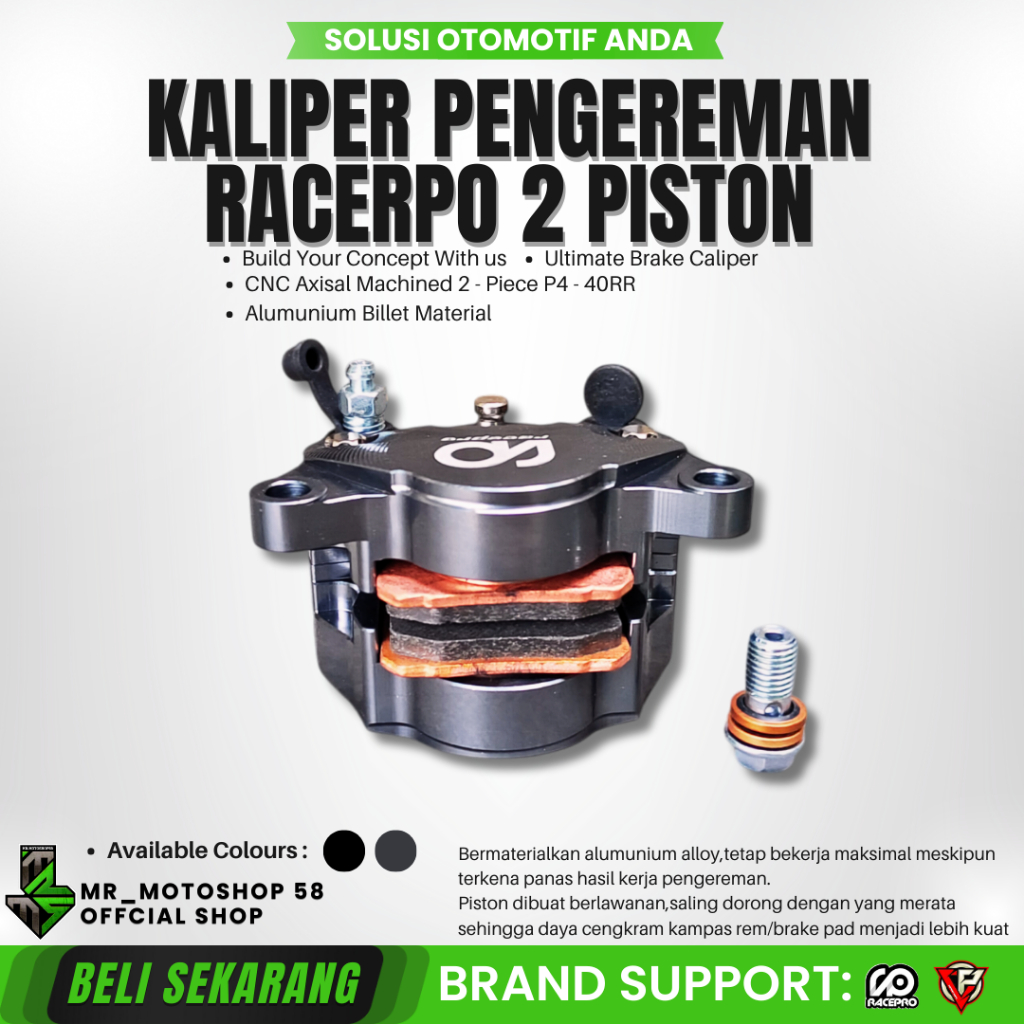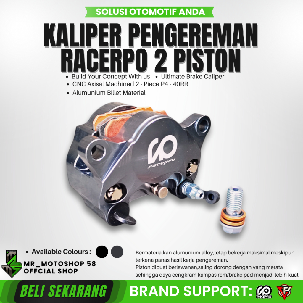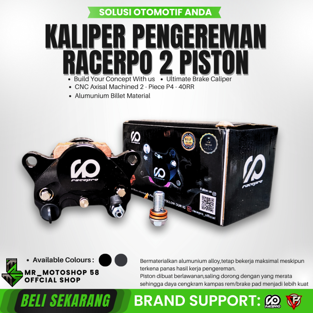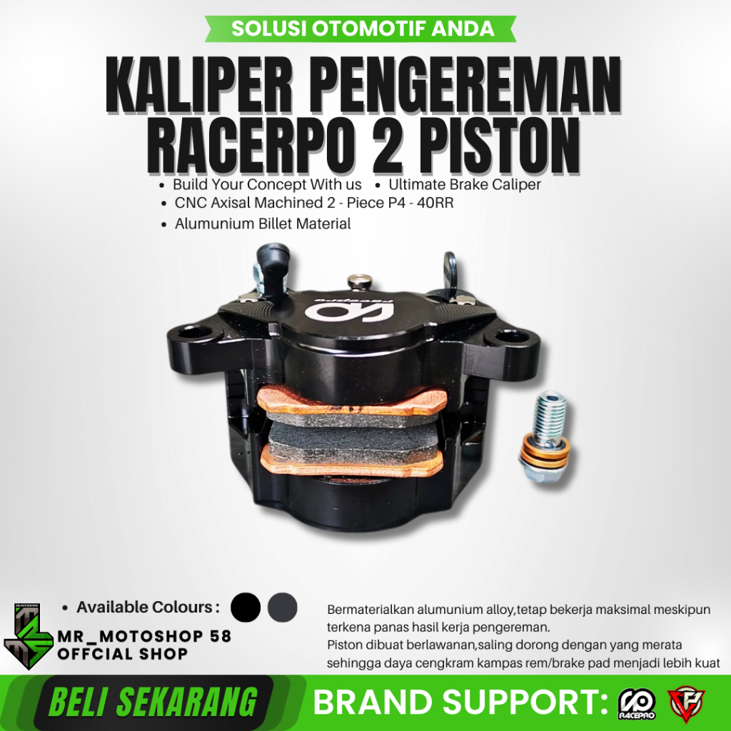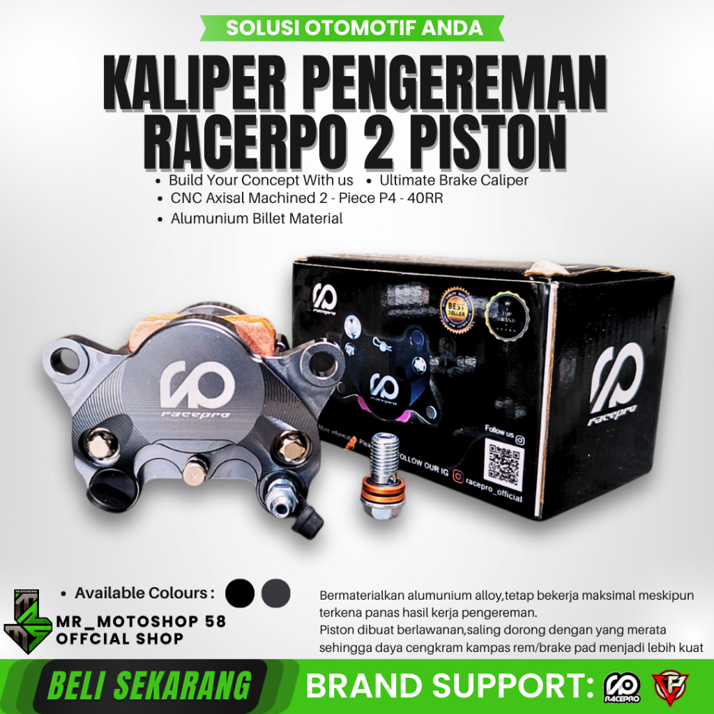 CALIPER RACEPRO 2 PISTON CALIPER KANAN DEPAN BELAKANG KALIPER 2 PISTON KALIPER 2P KANAN HITAM / GREY