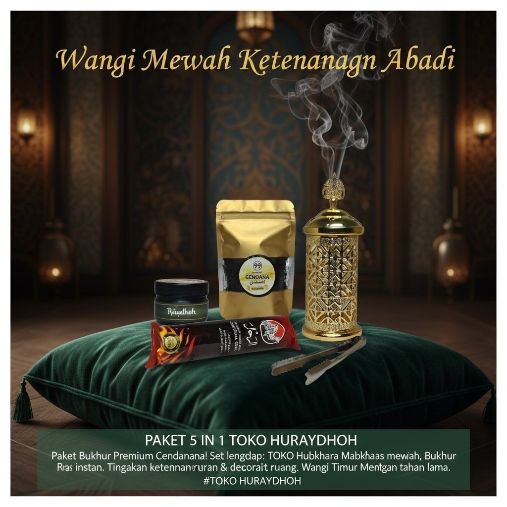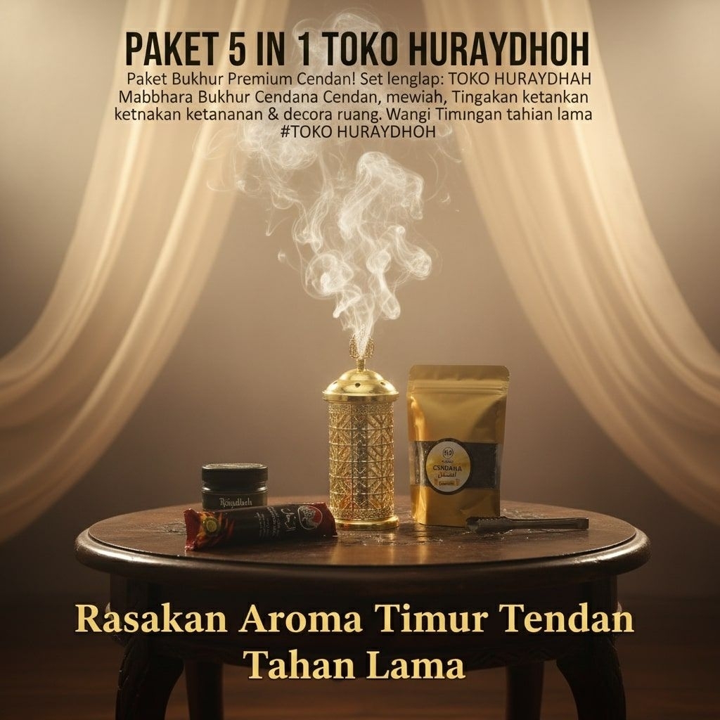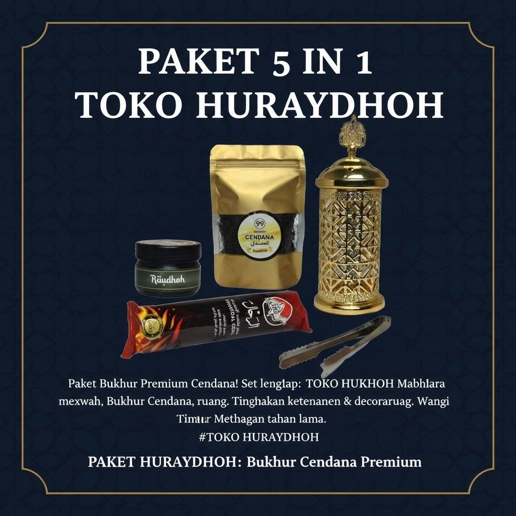 [PAKET 5 IN 1] Set Bukhur Premium Cendana & Raudhoh Toko Huraydhoh - Mabkhara Mewah + Arang Instan + Penjepit - Pengharum Ruangan Khas Timur Tengah