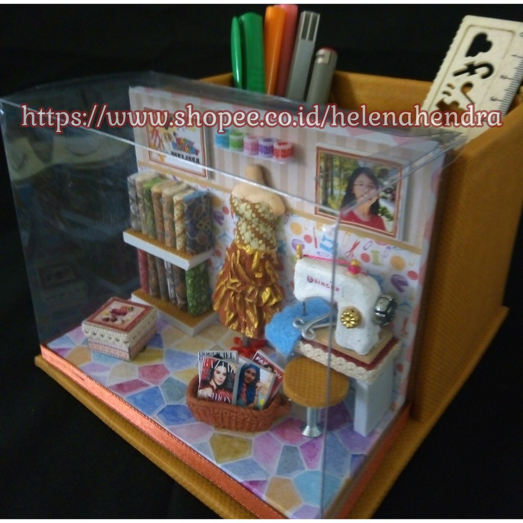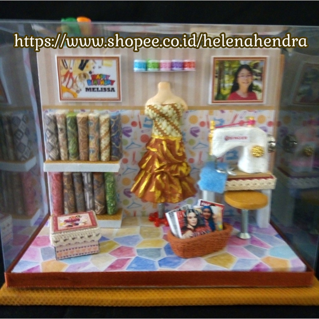 Miniatur Gaun Batik dengan wadah stationery kado buat yg hobby jahit Bisa custom foto & Ucapan