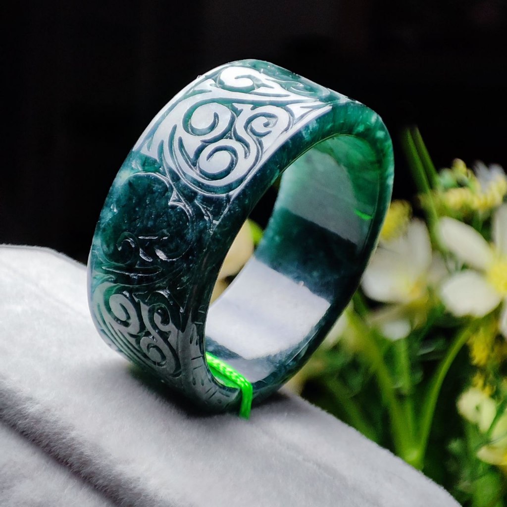 CINCIN BATU GIOK UKIR JUMBO ASLI BURMA NATURAL JADEITE JADE TYPE A BERSERTIFIKAT