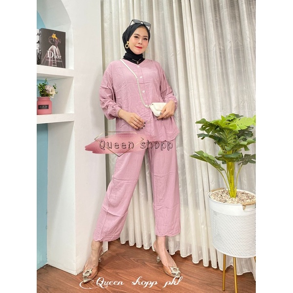 SETELAN RAYON BUSUI TERLARIS OMYRA ONE SET / AMANDA SET POLOS JUMBO / BAJU SETELAN RAYON CRINGKEL WANITA KEKINIAN
