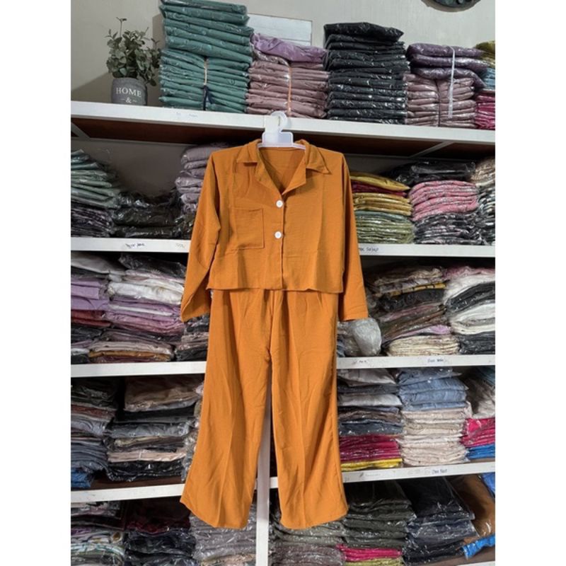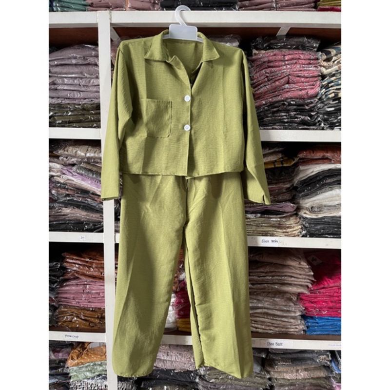 BAJU SETELAN CROP CRINGKEL BUSUI TERLARIS / SETELAN CROP WANITA / RUMI SETELAN ONE SET LINEN