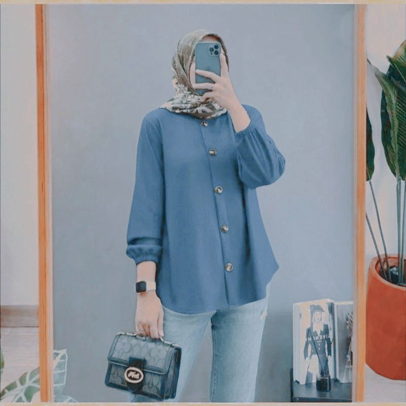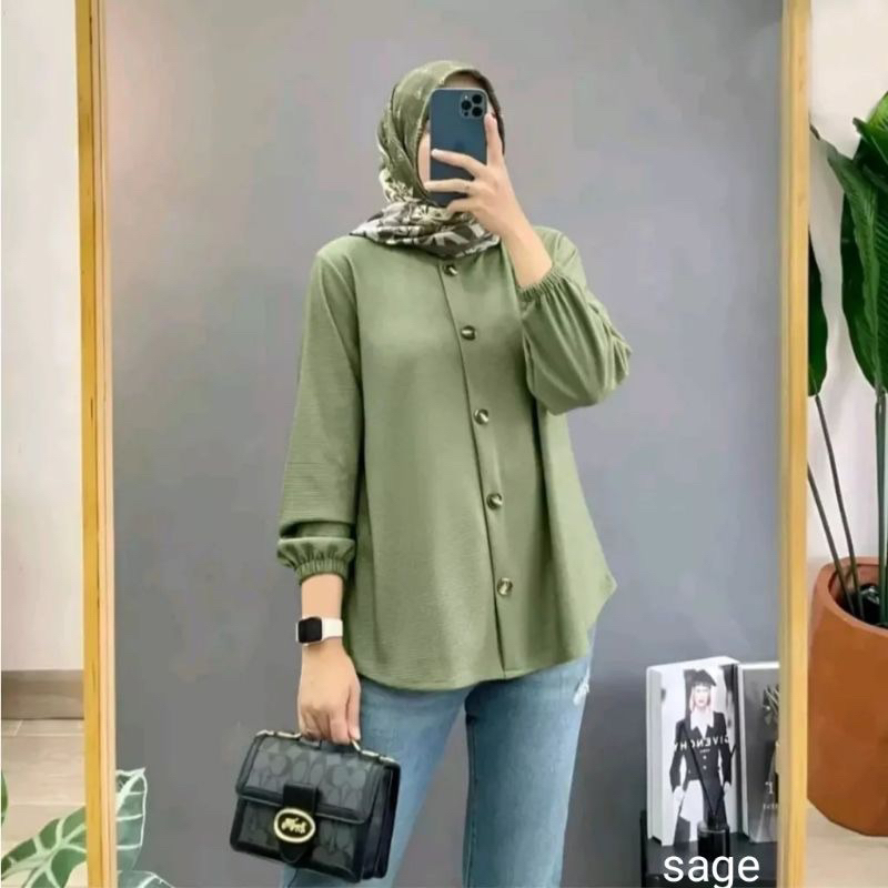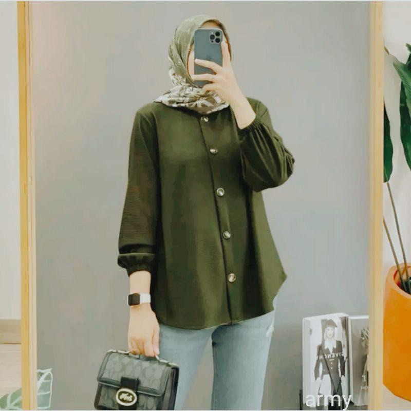 Atasan Wanita Kringkel Airflow Lengan Karet-Kemeja Blouse Wanita Kekinian