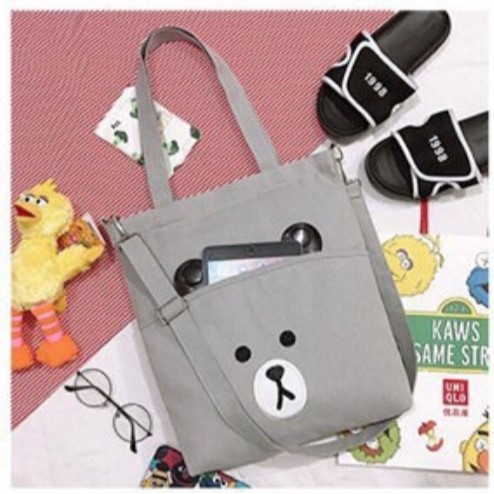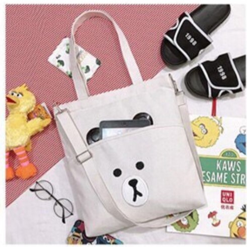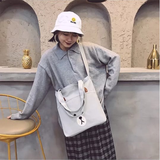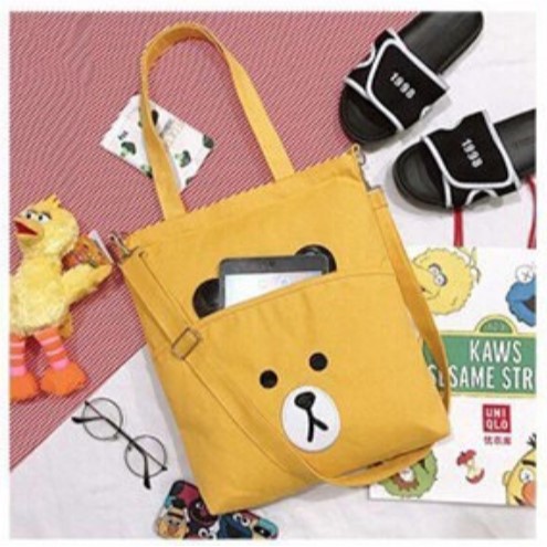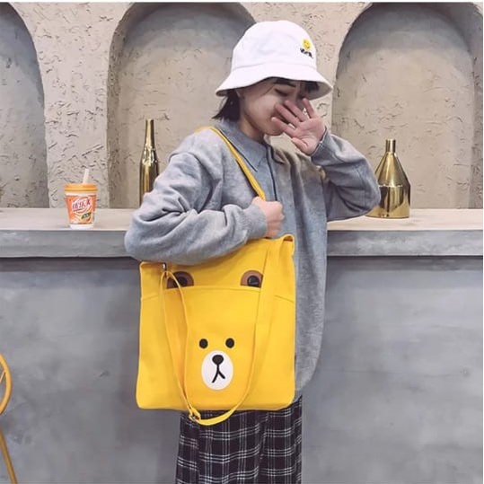 Twenty Bag - Tas Tote Bag Wanita Resleting Terbaru Aesthetic Kekinian Motif Carakter BROWCHIP Korea Style Multifungsi