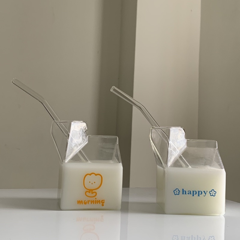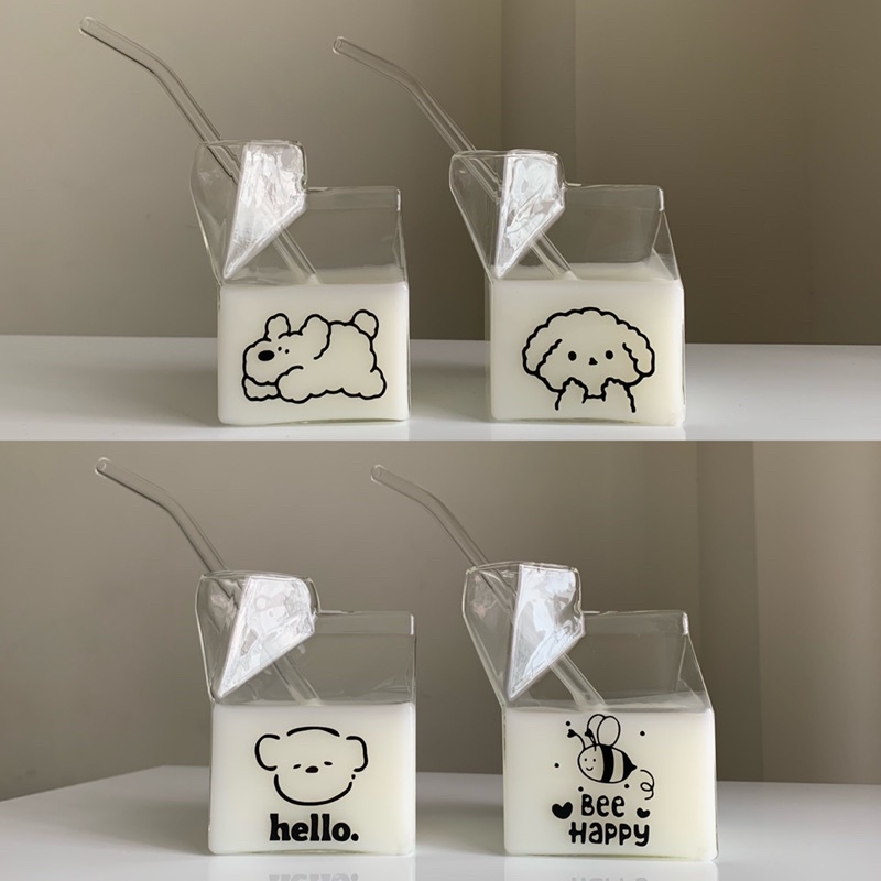 !! NEW ARRIVAL !! Set Gelas Kaca Susu | Gelas Susu | Gelas Kaca Design Milk Box | Gelas Susu Design Milk Box | Gelas Korea Aesthetic | Gelas Kaca | Gelas Motif | Gelas Karakter | Gelas Transparan | Gelas Kaca Milk Box