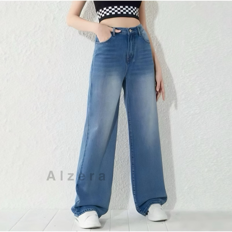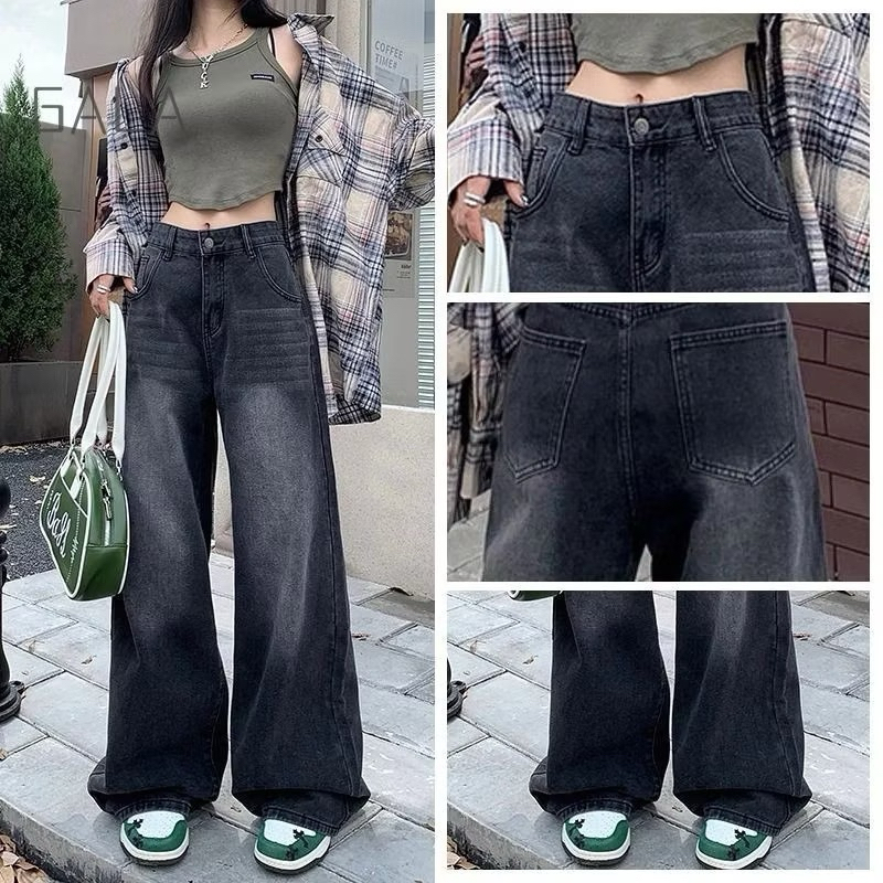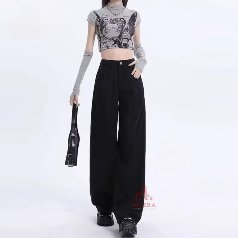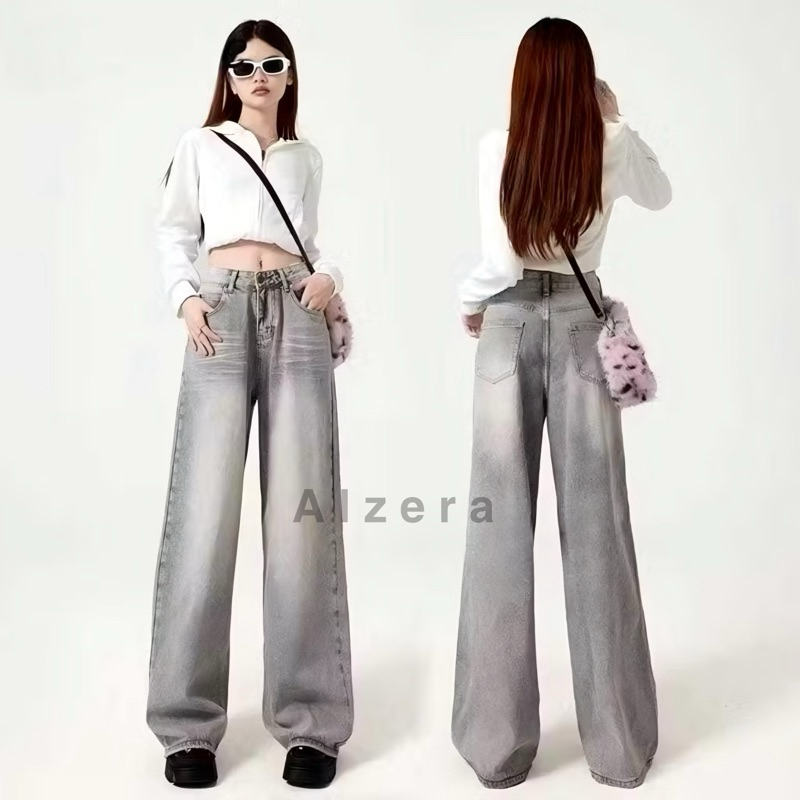 Highwaist Baggy Loose Jeans Grey 234 by Alzera