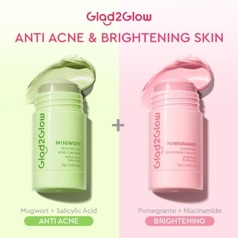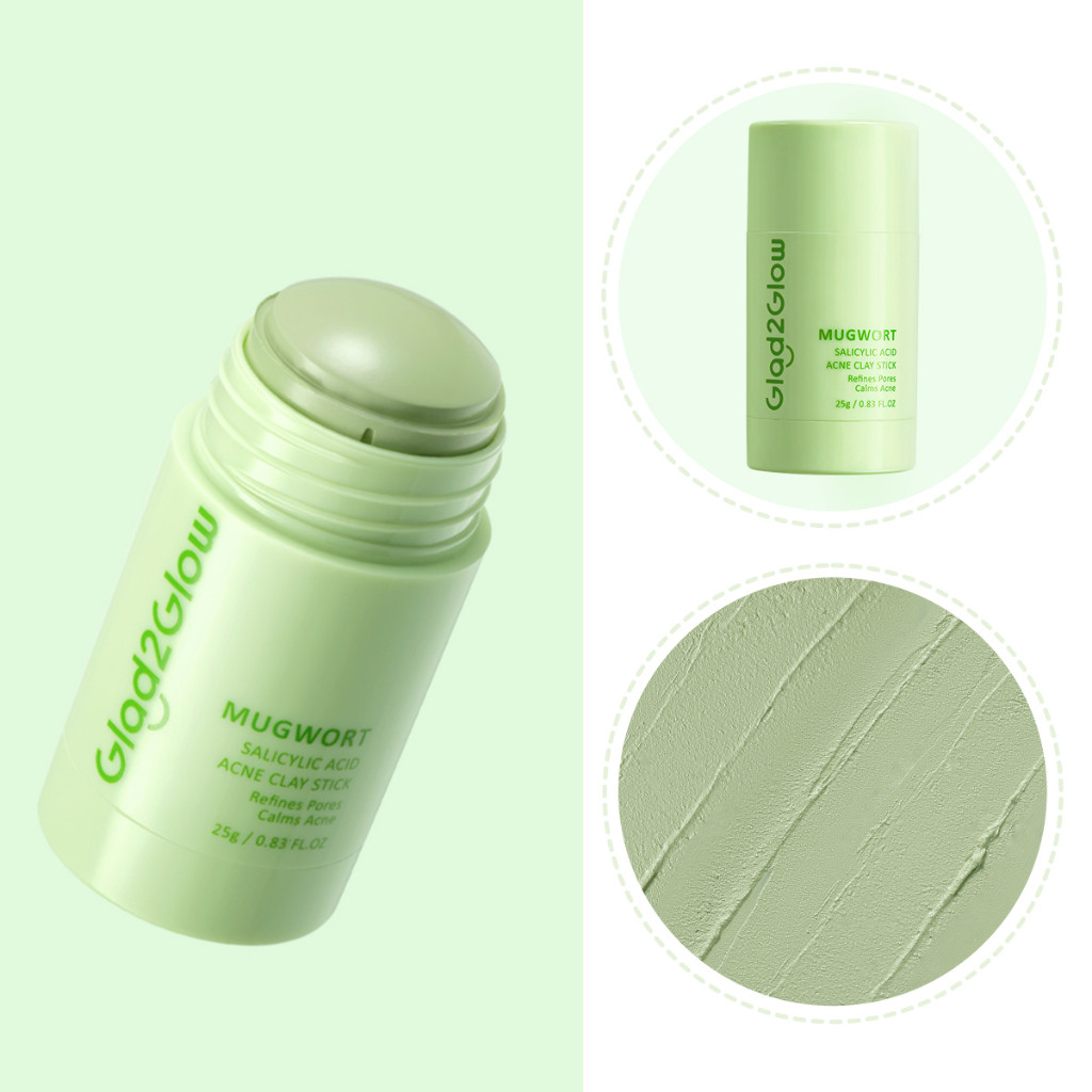 Glad2Glow G2G Clay Stick Masker Wajah - Face Cleansing Stick, Salicylic Acid & Acne Care, Mugwort