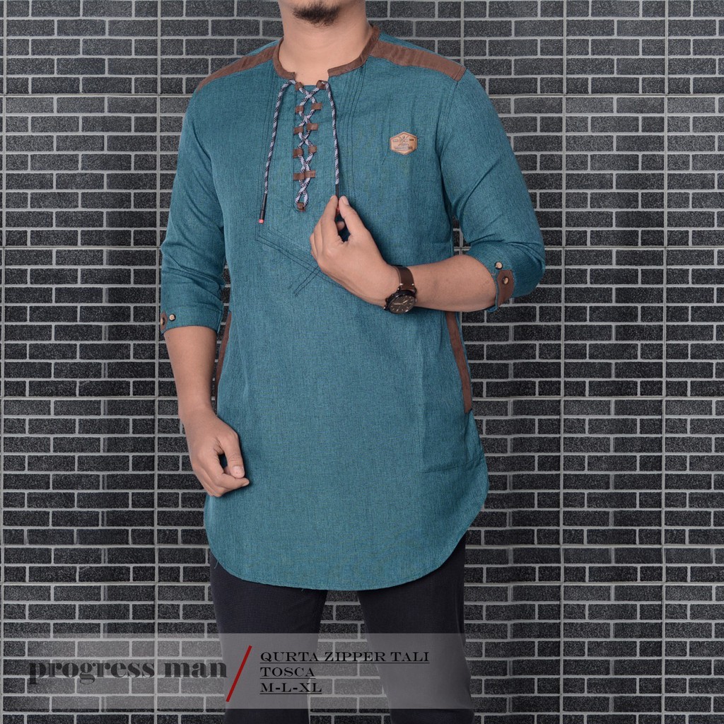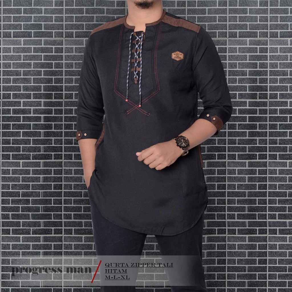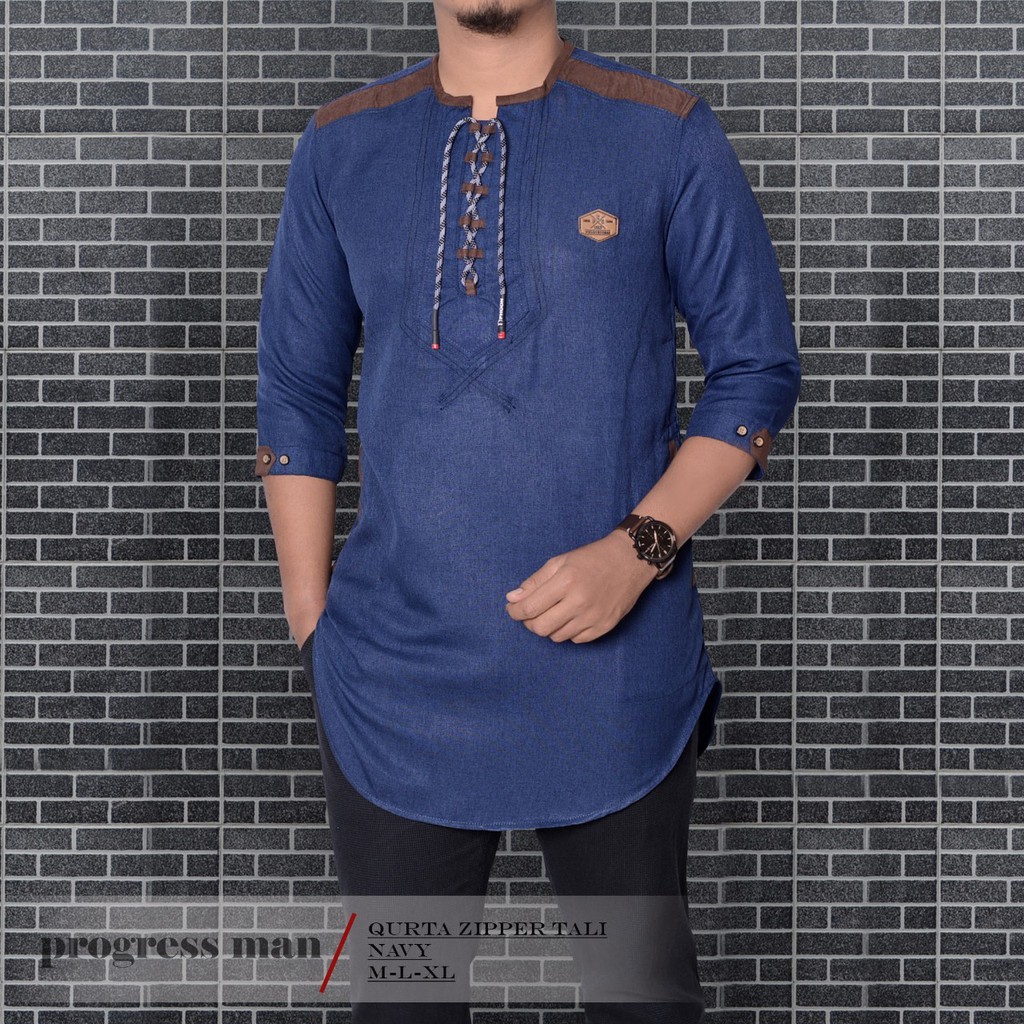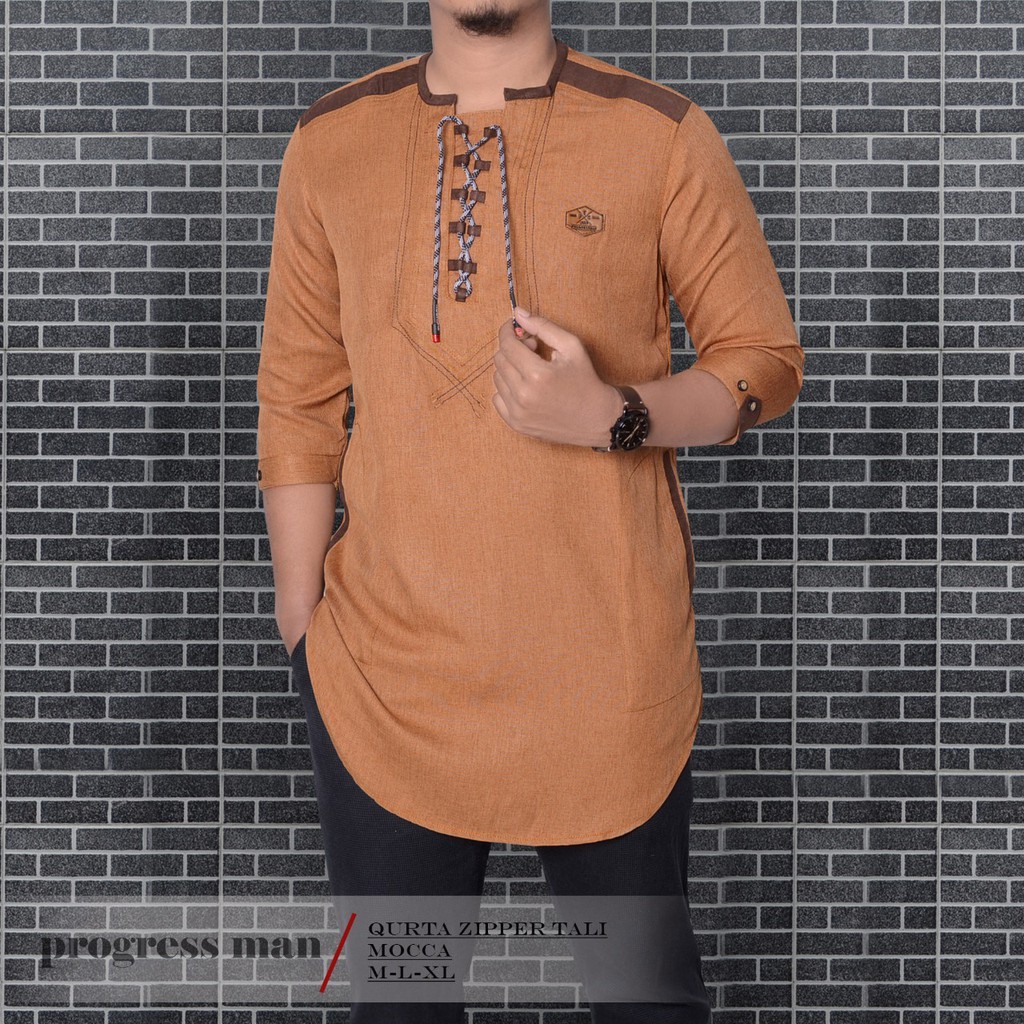 Baju Koko Kurta Zipper Tali Pakaian Muslim Pria Atasan Bahan Katun Premium