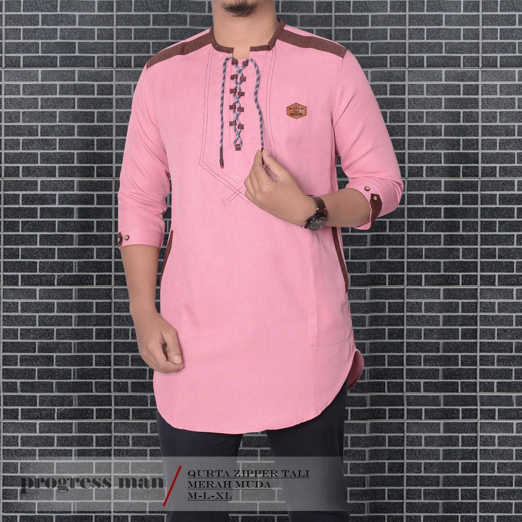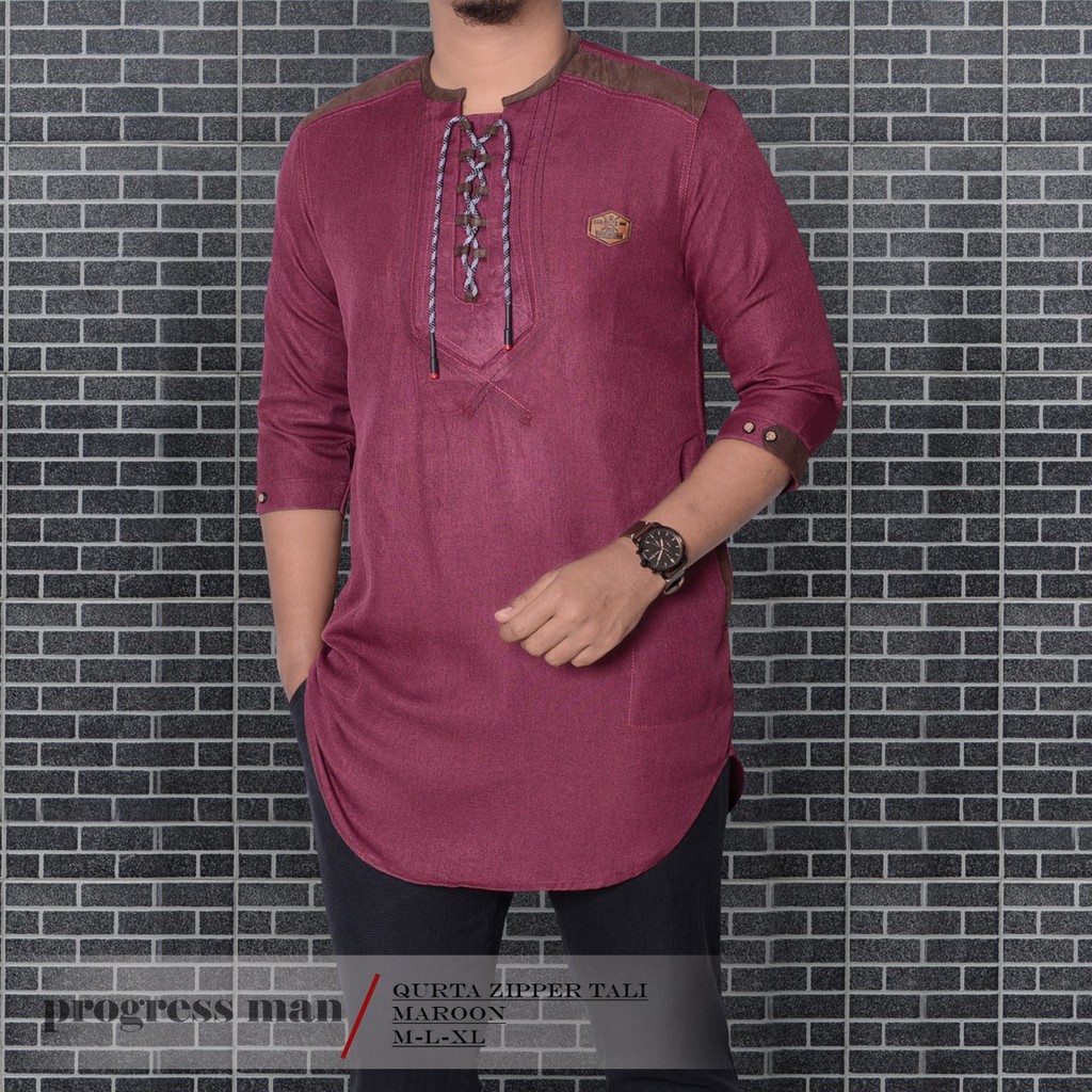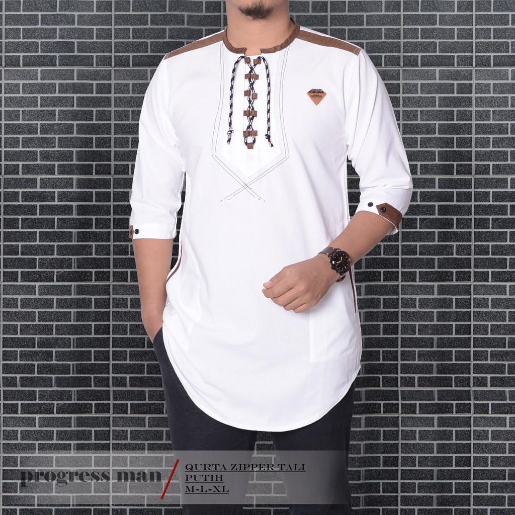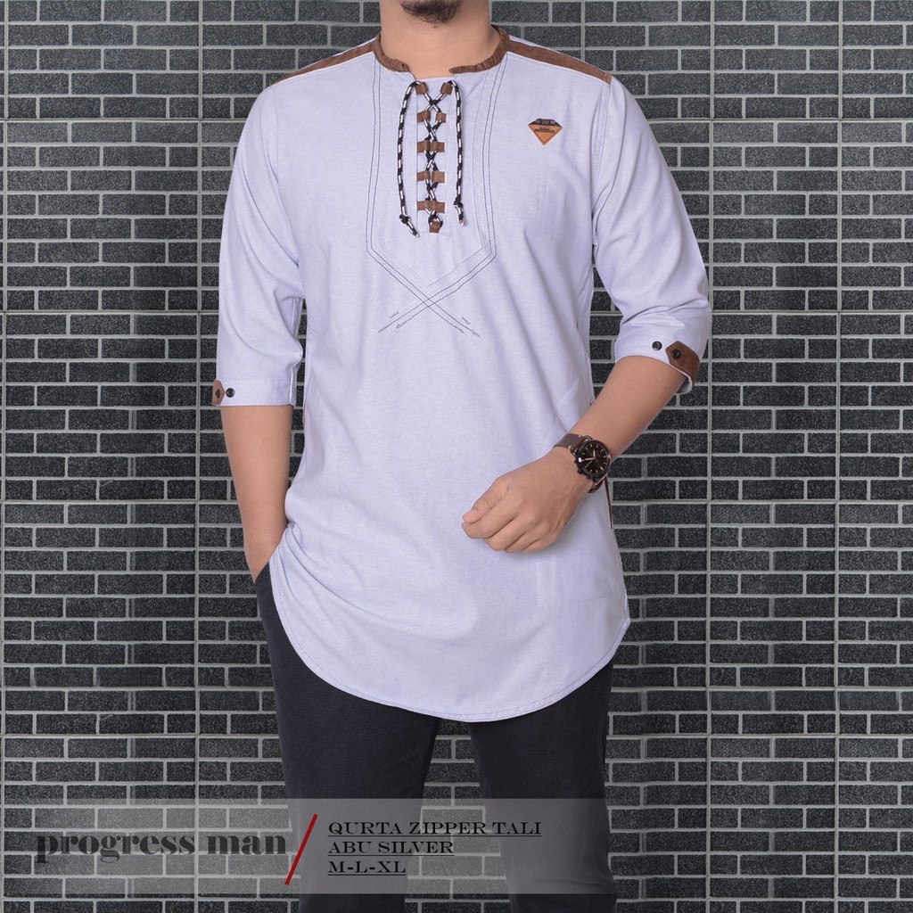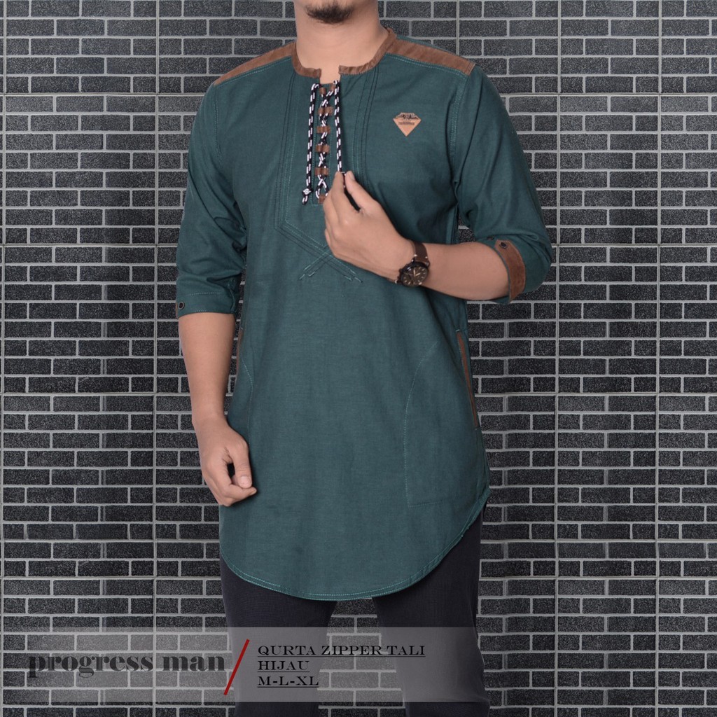 Baju Koko Kurta Zipper Tali Pakaian Muslim Pria Atasan Bahan Katun Premium