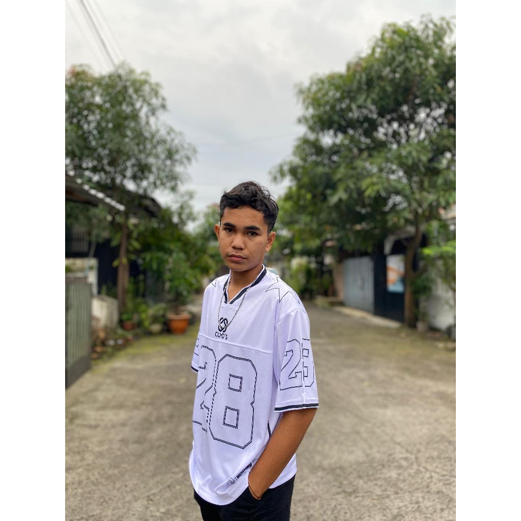 DELIMA | jersey Streetwear number 28 putih | kaos unisex Premium | jersey vintage | oversize | laris