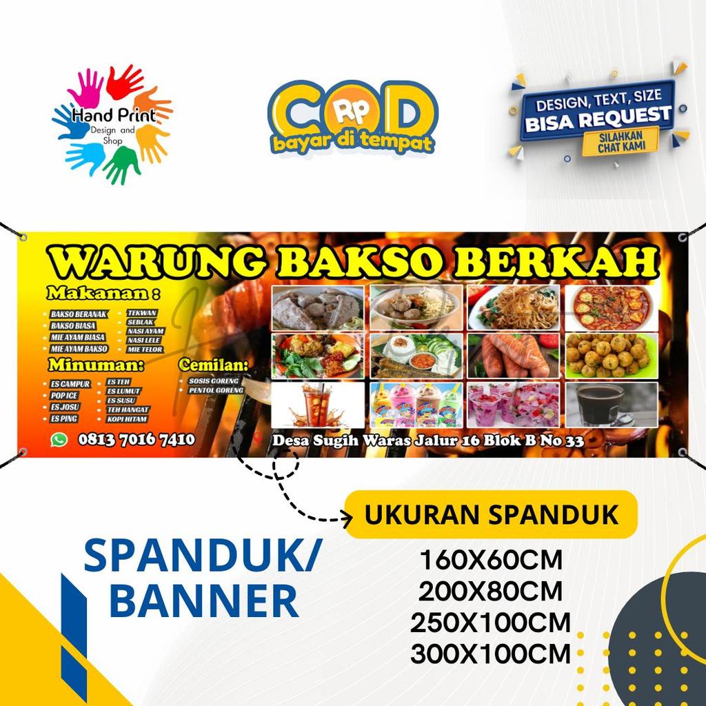 Cetak Spanduk Banner Warung Bakso Berkah kuning MMT Spanduk Custom 300x100CM