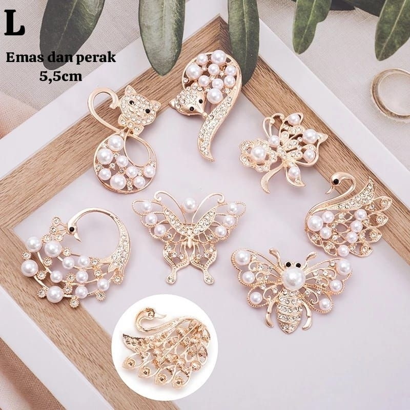 BROS MINI DAN BESAR EMAS PERAK, PENITI, JARUM PENTUL ACCESSORIES JILBAB