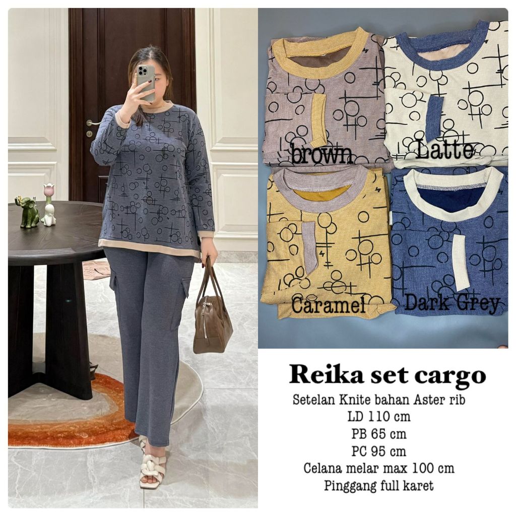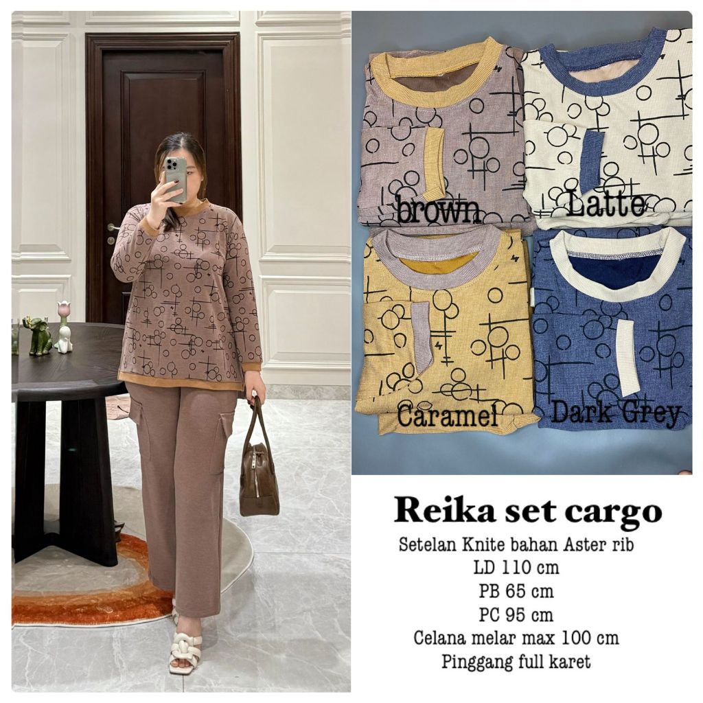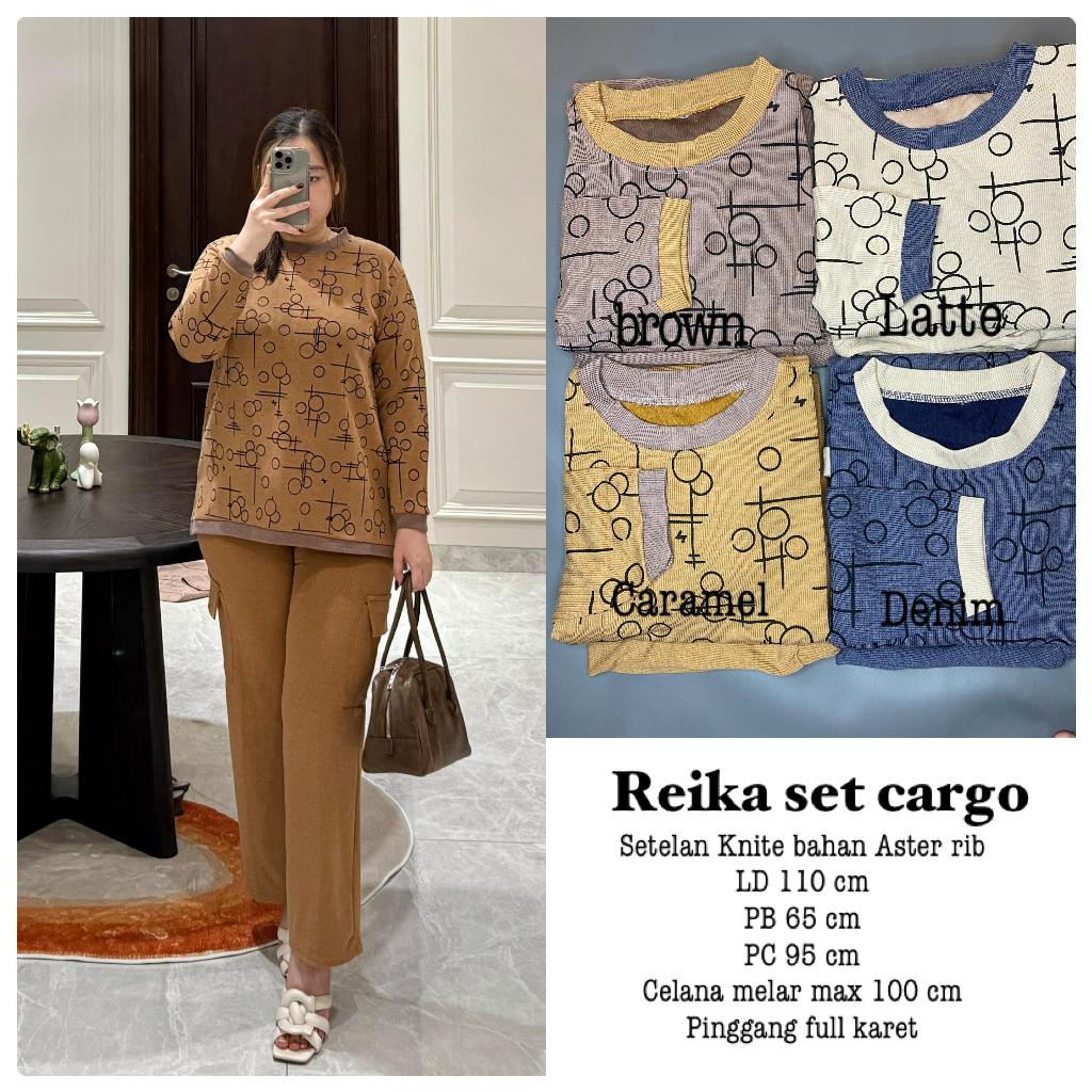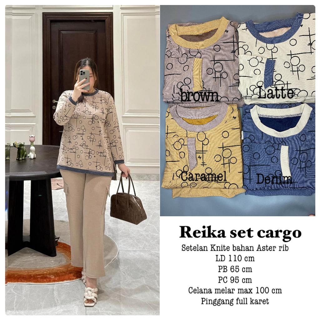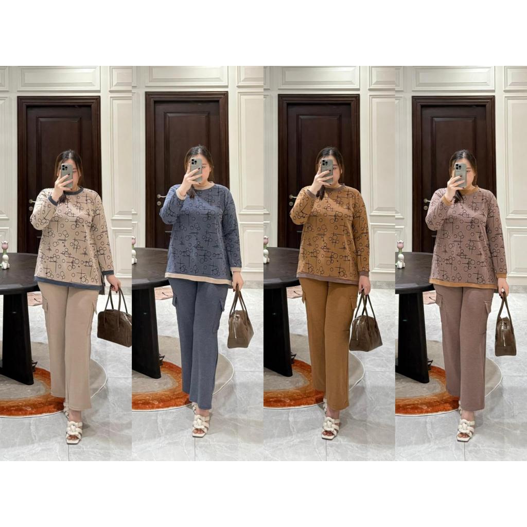 Antika Fashion - Reika Set Cargo Bahan Knite Aplikasi Sablon Setelan Wanita Dewasa Terbaru 2025