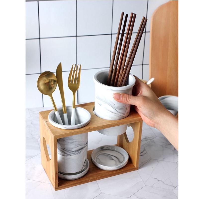 Tempat Garpu & Sendok Kayu isi 2