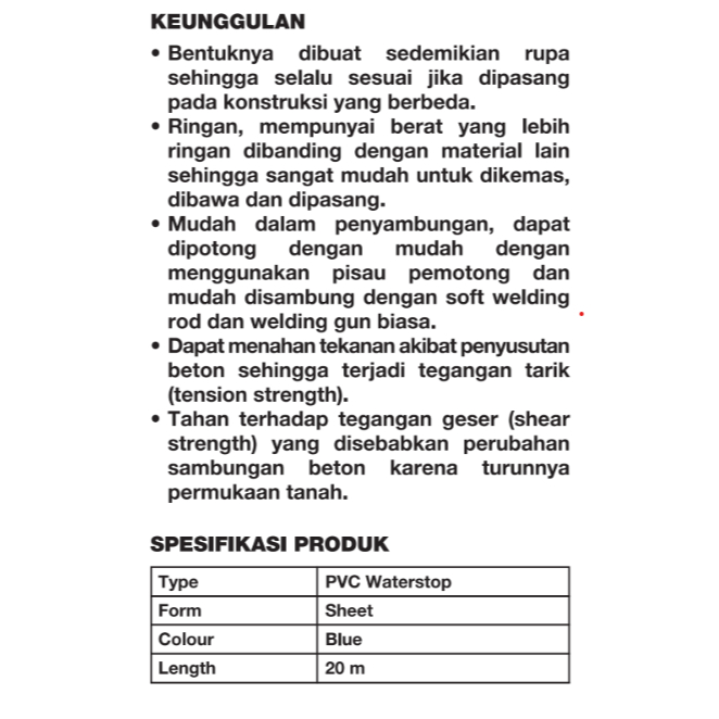 Ultrachem Waterstop PVC WSF 150 20 Meter