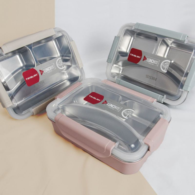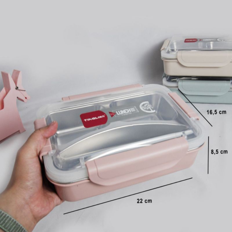 Bakul - Bekal Lunch Box Stainless Tingli 8156 Kotak Makan Stenlis SUS304 Kotak Bekal Anak Kantoran Sekat 3