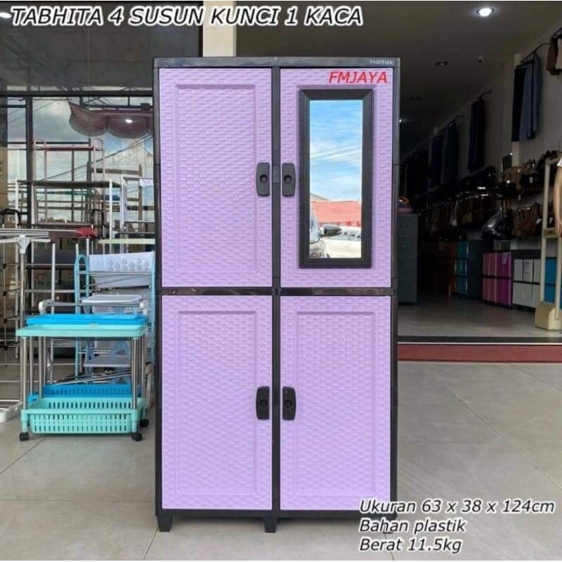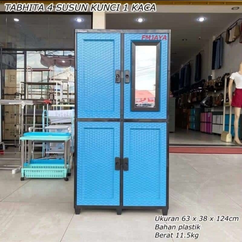 Lemari Pakaian Kabinet Plastik Kunci Kaca Tabitha